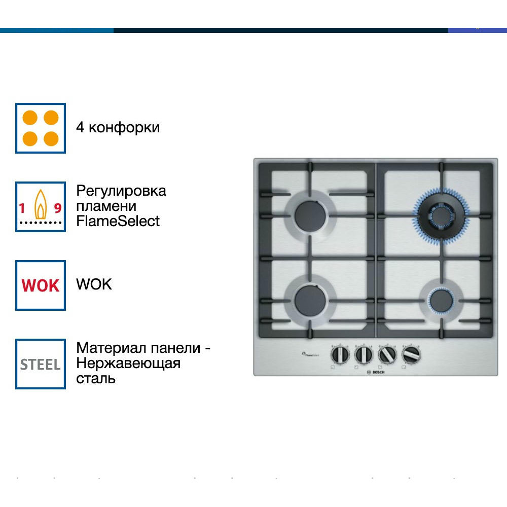 Варочная панель Bosch PСH6А5B90R представлена в стильном цвете «Металл». Она подойдет к кухням, выполненным в современном стиле, а также в стиле ретро. Модель выполнена из нержавеющей стали — этот материал устойчив к температурным воздействиям и характерен для большого срока эксплуатации.