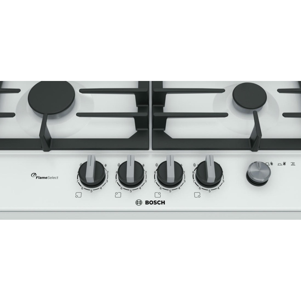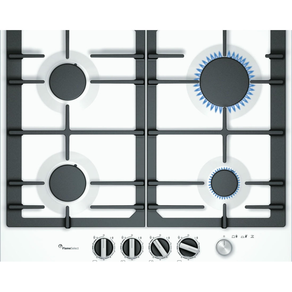 Независимая газовая варочная панель Bosch PCP6A2M90 классического белого цвета будет хорошо гармонировать с классическим дизайном. Массивные чугунные решетки легко снимаются для чистки. Система регулировки пламени FlameSelect имеет 9 ступеней, что позволяет достичь максимально точного температурного режима. Четыре конфорки с электроподжигом: одна мощная, две стандартные и одна экономичная. Термоэлектрическая защита от утечки газа повышает уровень безопасности эксплуатации поверхности.