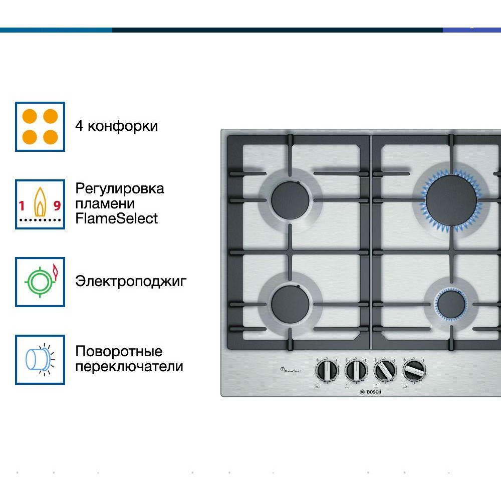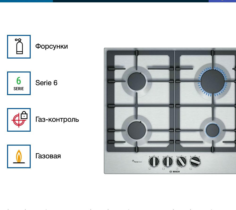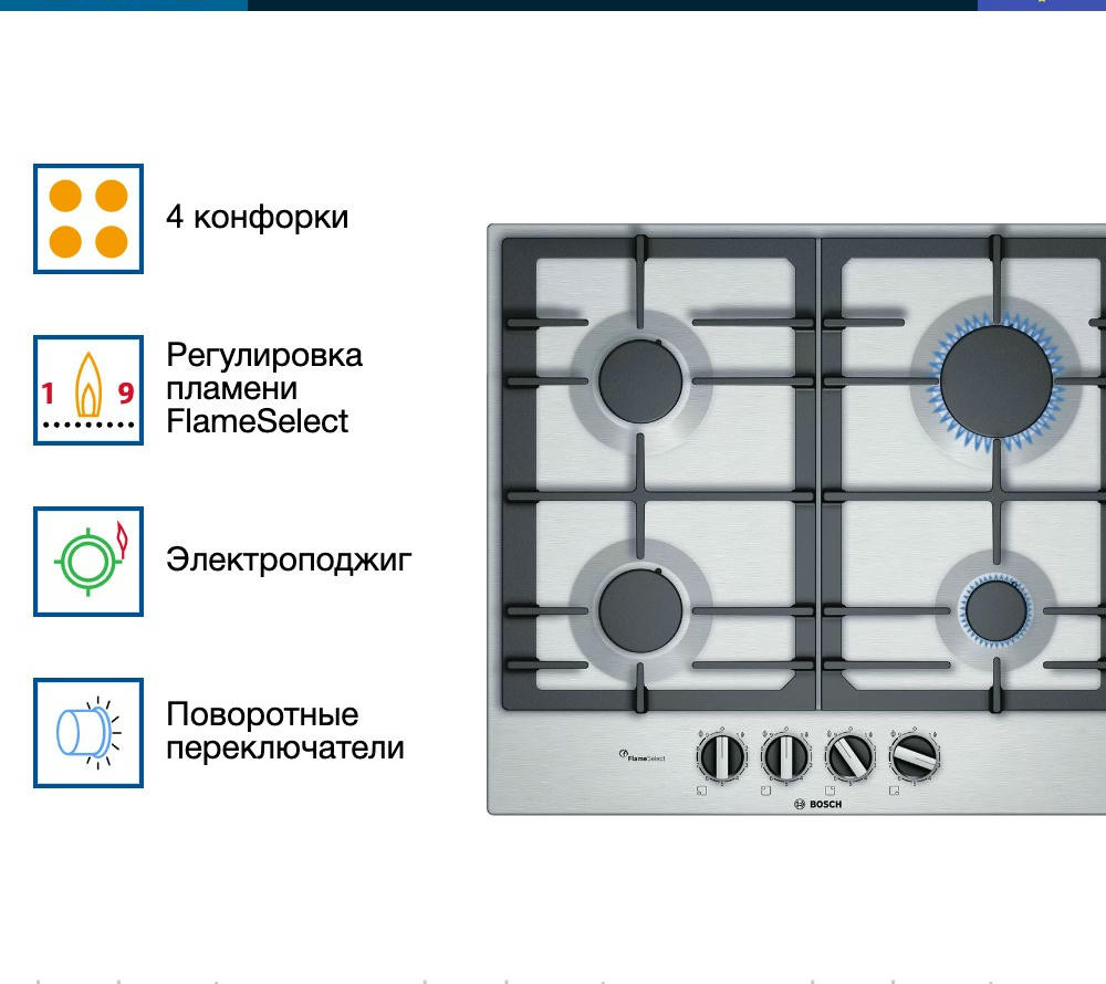 Варочная панель Bosch PCP6A5B90M выполнена из нержавеющей стали. Такой материал особенно устойчив к высоким температурам и моющим средствам. Он отличается долгим сроком эксплуатации. Открытый огонь не страшен ни Вам, ни вашей посуде — горелки надежно закрыты решетками. Чугунные решетки устойчивы к высоким температурам и долговечны. Они дополняют дизайн моделей, долго сохраняют свой внешний вид, безопасны при приготовлении, а также шероховатая поверхность не позволяет скользить посуде.