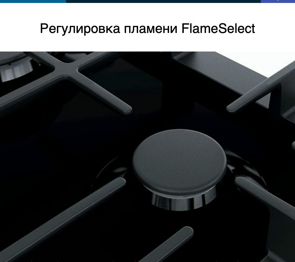 Данную модель дополняет функция регулировки мощности пламени. С ее помощью теперь вы сможете точно регулировать пламя газовой горелки по 9 ступеням. Это позволит вам подобрать определенную мощность нагрева для приготовления конкретного блюда. С функцией FlameSelect процесс приготовления на газовой панели станет еще проще и приятнее.