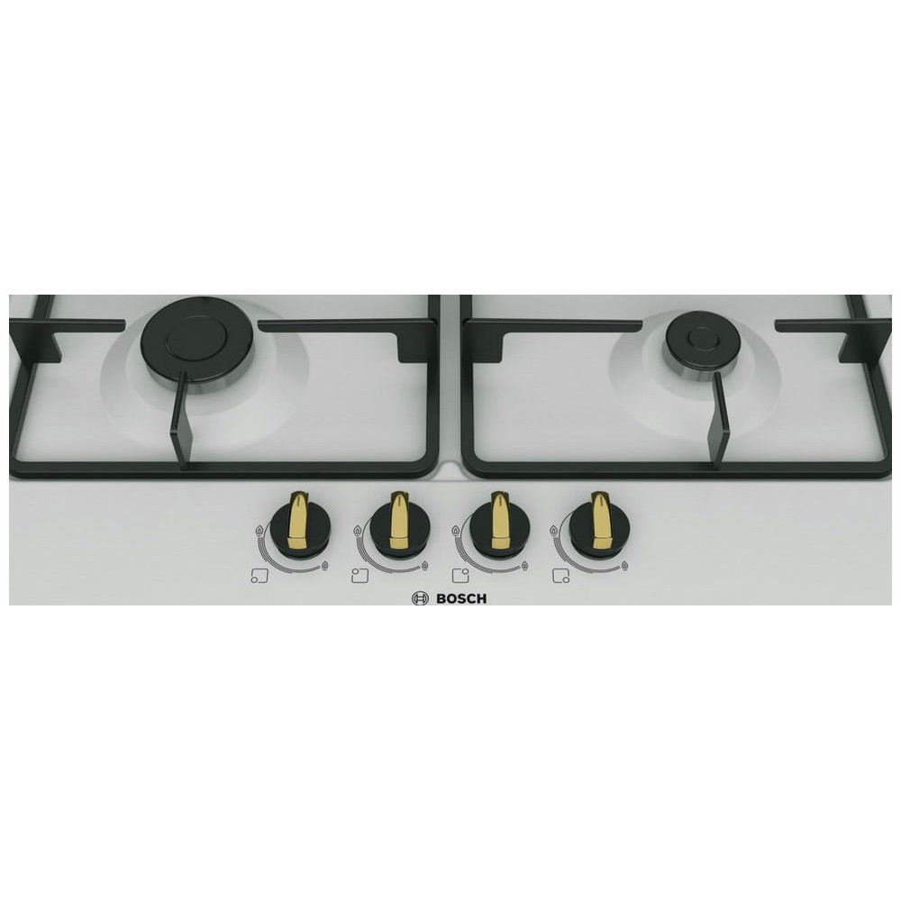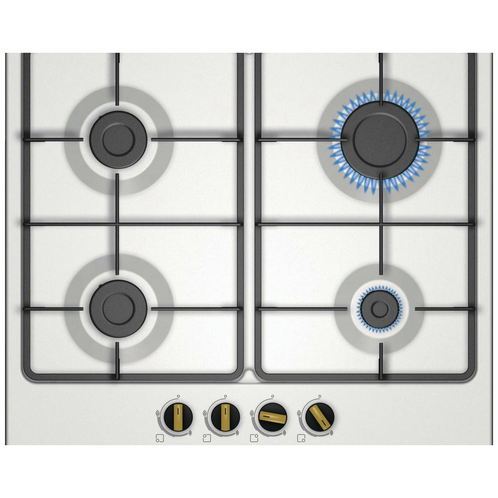 Чугунные решетки и черные с золотом переключатели красиво контрастируют с белой эмалью поверхности. Составные держатели легко снимать для чистки. Автоматический электроподжиг упрощает использование прибором. Функция газ-контроля предохраняет от утечек, при затухании пламени система перекрывает подачу топлива.
