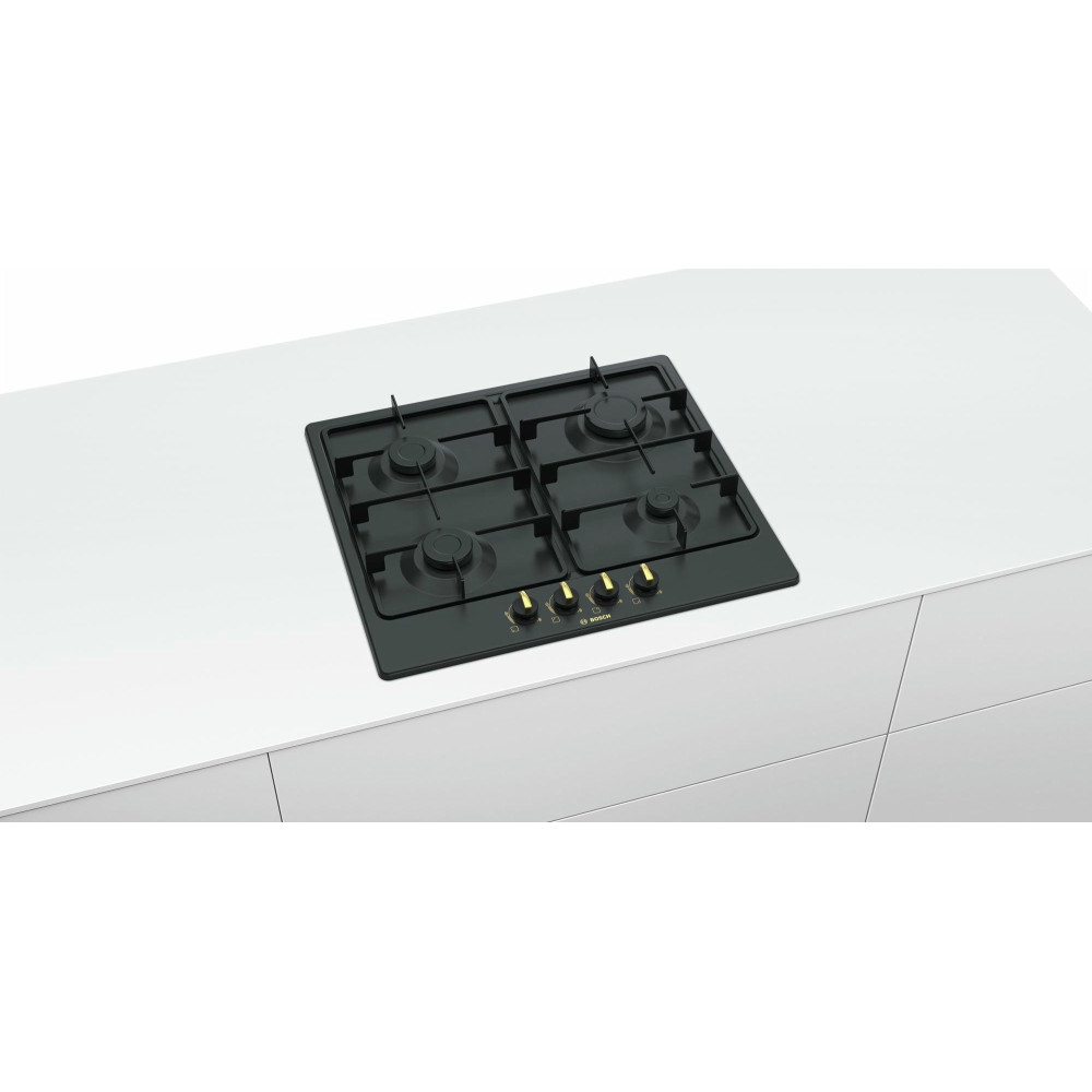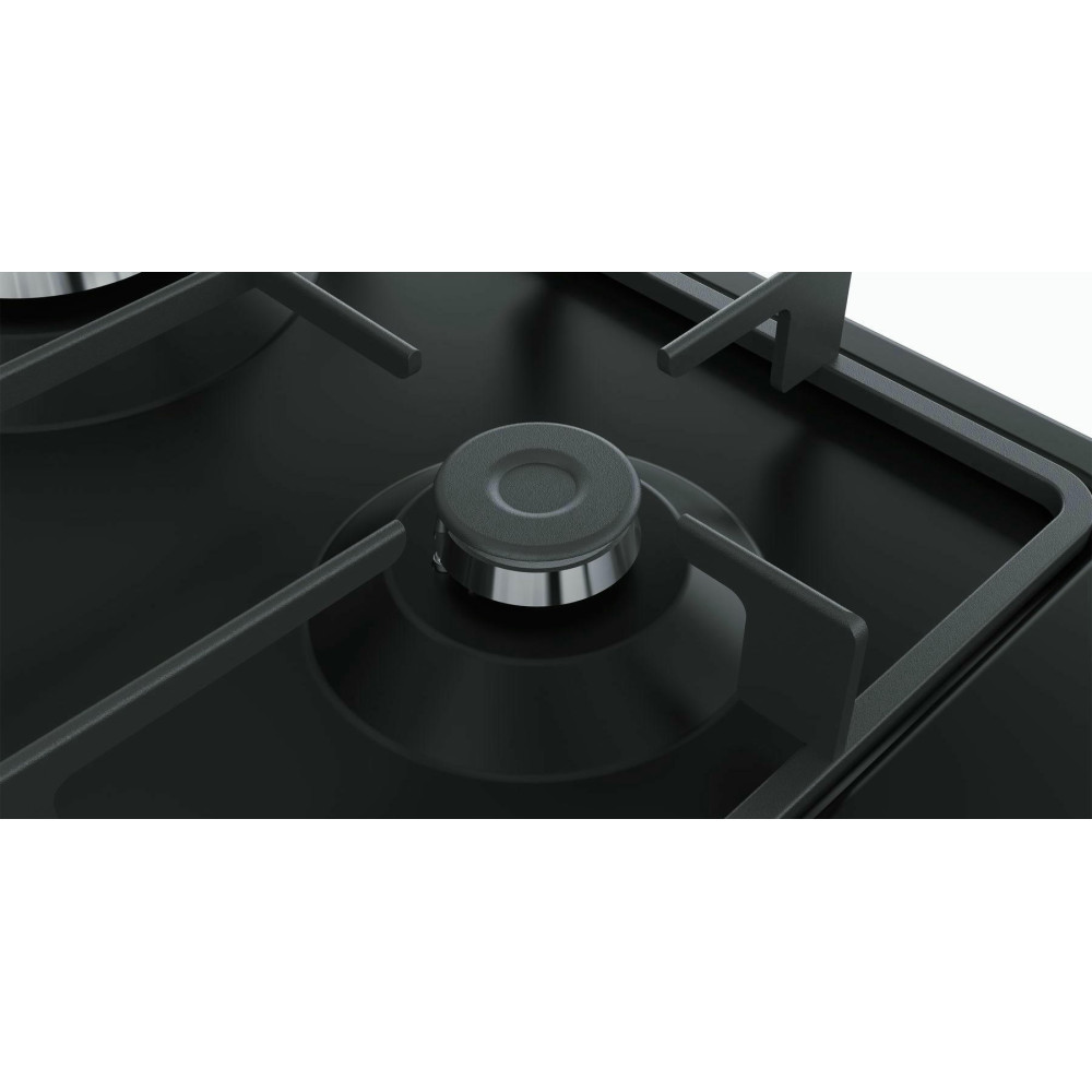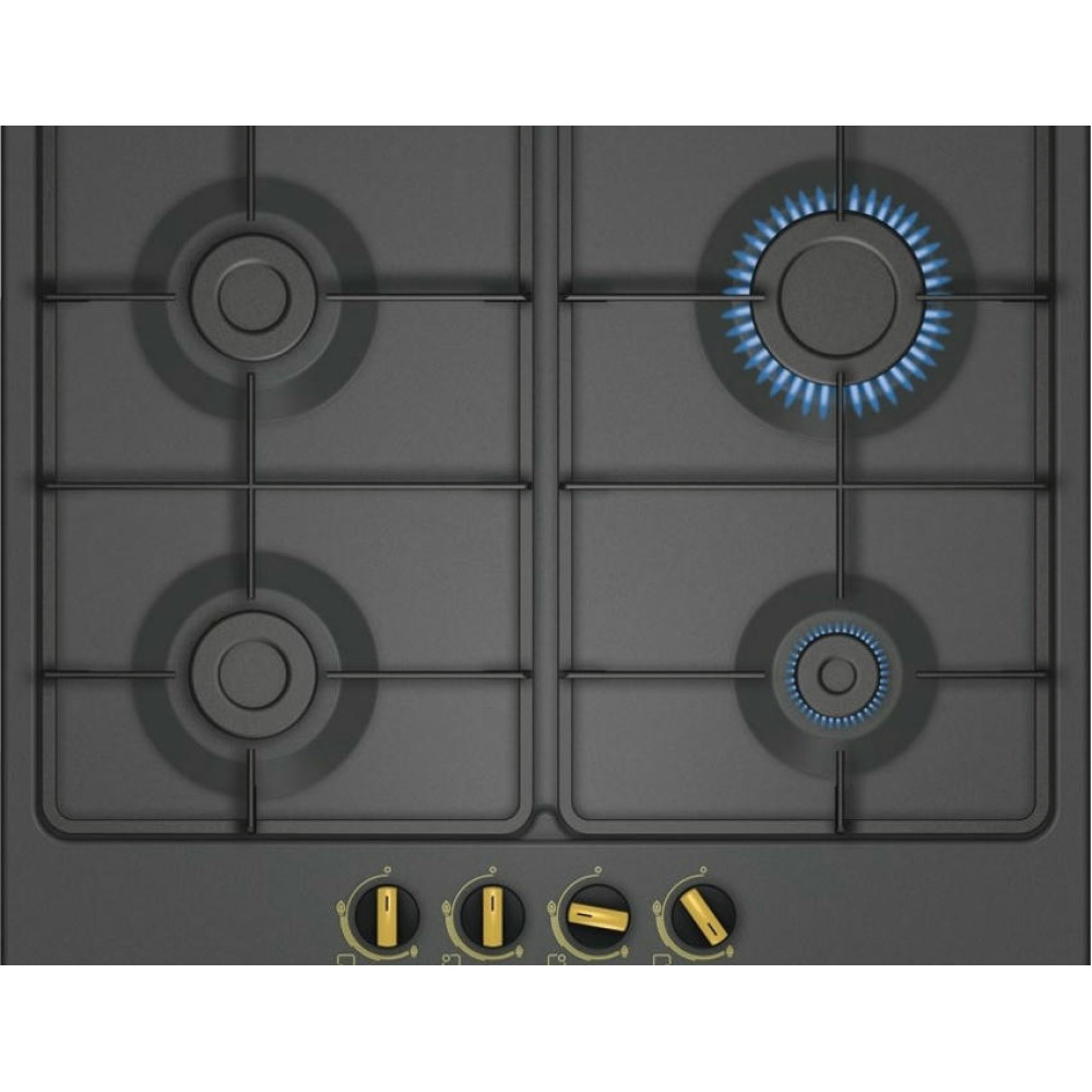 На черной эмали ярко выделяются переключатели с золотым декором. Черные чугунные решетки надежно удерживают посуду, их легко снимать для чистки. Функция газ-контроля защищает от утечек.