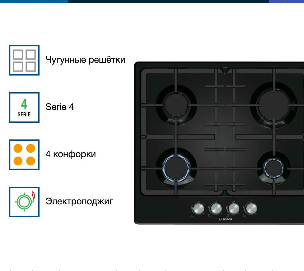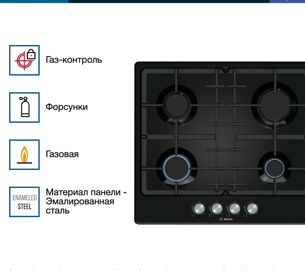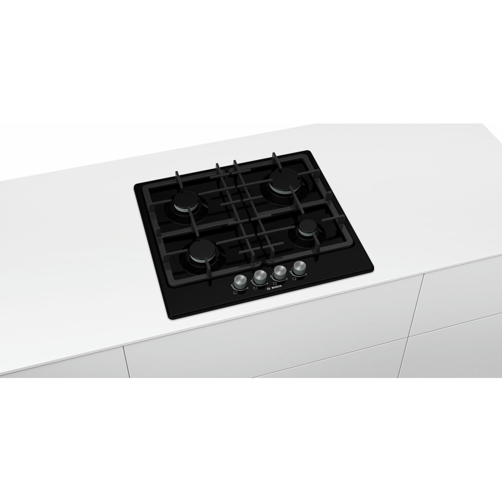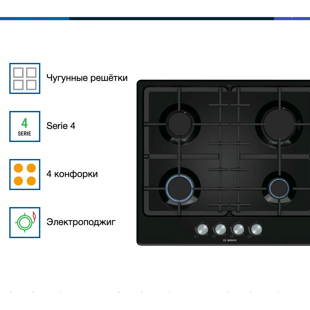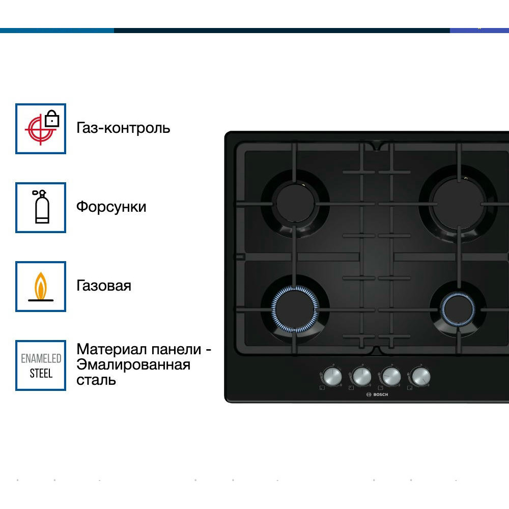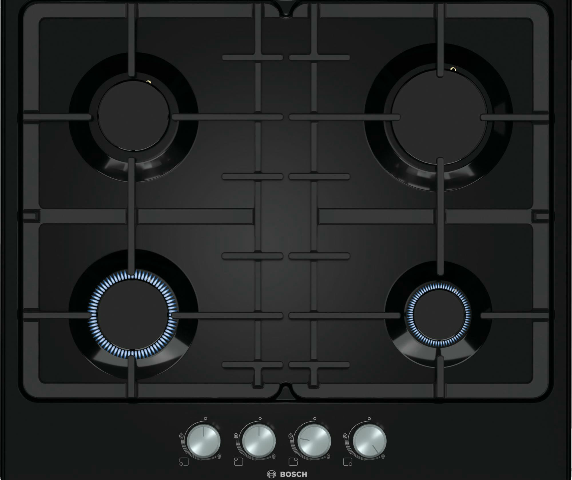 Варочная панель Bosch PGP6B6O93R в черном цвете выполнена с эмалированной поверхность. Газ-контроль прекратит подачу газа, если конфорки случайно погаснут. Автоматический электроподжиг позволит не использовать спички и зажигалку. Чугунные решетки не подвержены коррозии и отличаются повышенной прочностью.