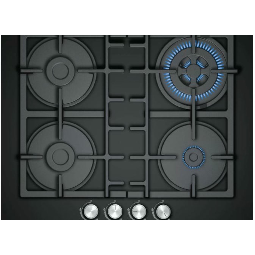 Для надежной установки посуды предусмотрены чугунные решетки. Управление осуществляется при помощи поворотных переключателей, в которые встроен автоматический электроподжиг.