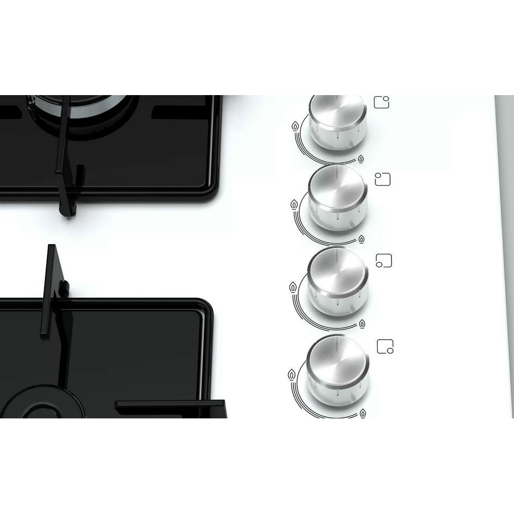 Газовая варочная панель POP7C2O12O — современная модель, выполненная в белом цвете. Прибор имеет четыре мощные конфорки, которые позволяют готовить несколько блюд одновременно. Устройство имеет автоматический электроподжиг, для зажигания пламени достаточно просто повернуть ручку. Система газ-контроля перекрывает подачу газа если пламя случайно потухло. Панель имеет простое механическое управление, поворотные регуляторы расположены сбоку. Закаленное стекло легко очищается, а также устойчиво к высоким температурам.