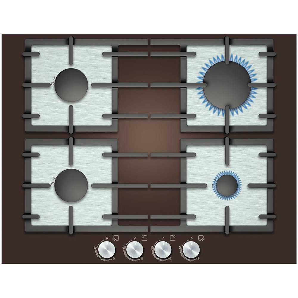 Газовая варочная панель PPP 614B91R — это стиль, эстетика и надежность от Bosch. Элегантный коричневый цвет привносит в интерьер уют. Поверхность из закаленного стекла смотрится элегантно и современно. Материал устойчив к агрессивным моющим средствам и высоким температурам. Эргономичные поворотные ручки оснащены автоматическим электроподжигом. Особенность модели в оригинальном дизайне чугунных держателей для посуды. При угасании пламени срабатывает система «Газ-контроль», которая блокирует подачу газа.