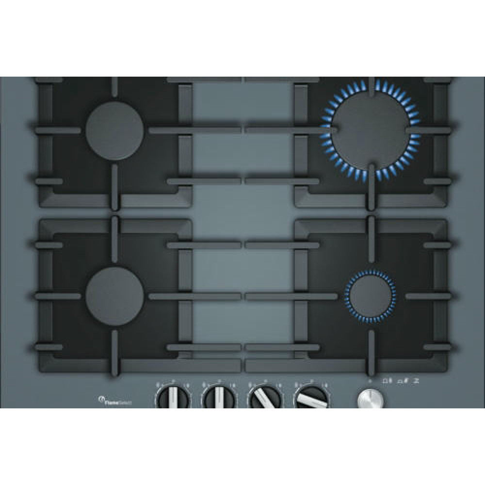 Bosch PPP6A9M90 — газовая варочная панель с функцией девятиступенчатой регулировки пламени FlameSelect. Наличие главного выключателя обеспечивает возможность выключения всей варочной поверхности одним нажатием кнопки. Термоэлектрическая защита позволяет избежать утечки газа при внезапном затухании пламени.