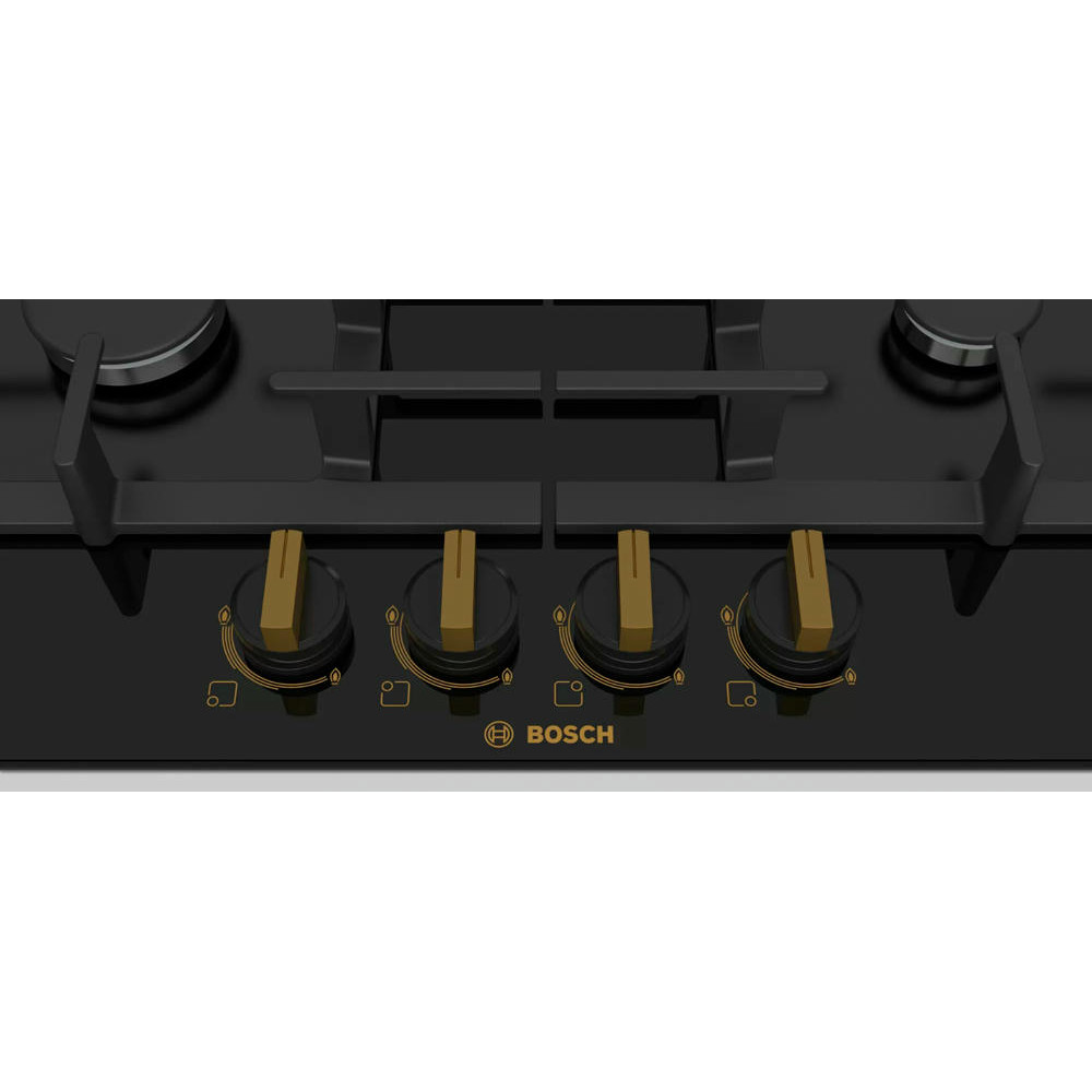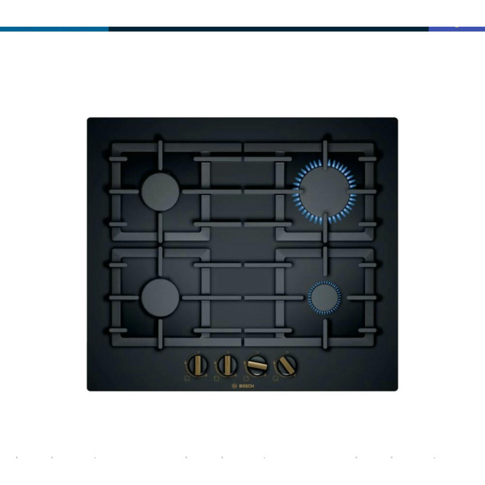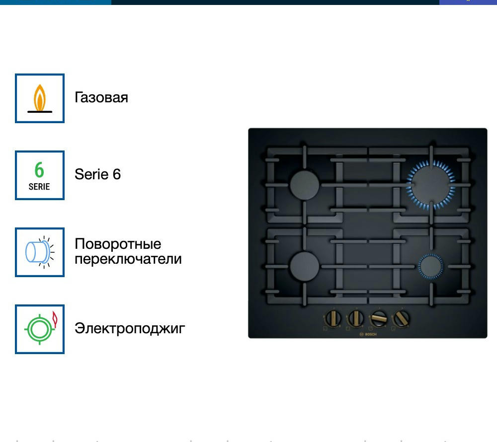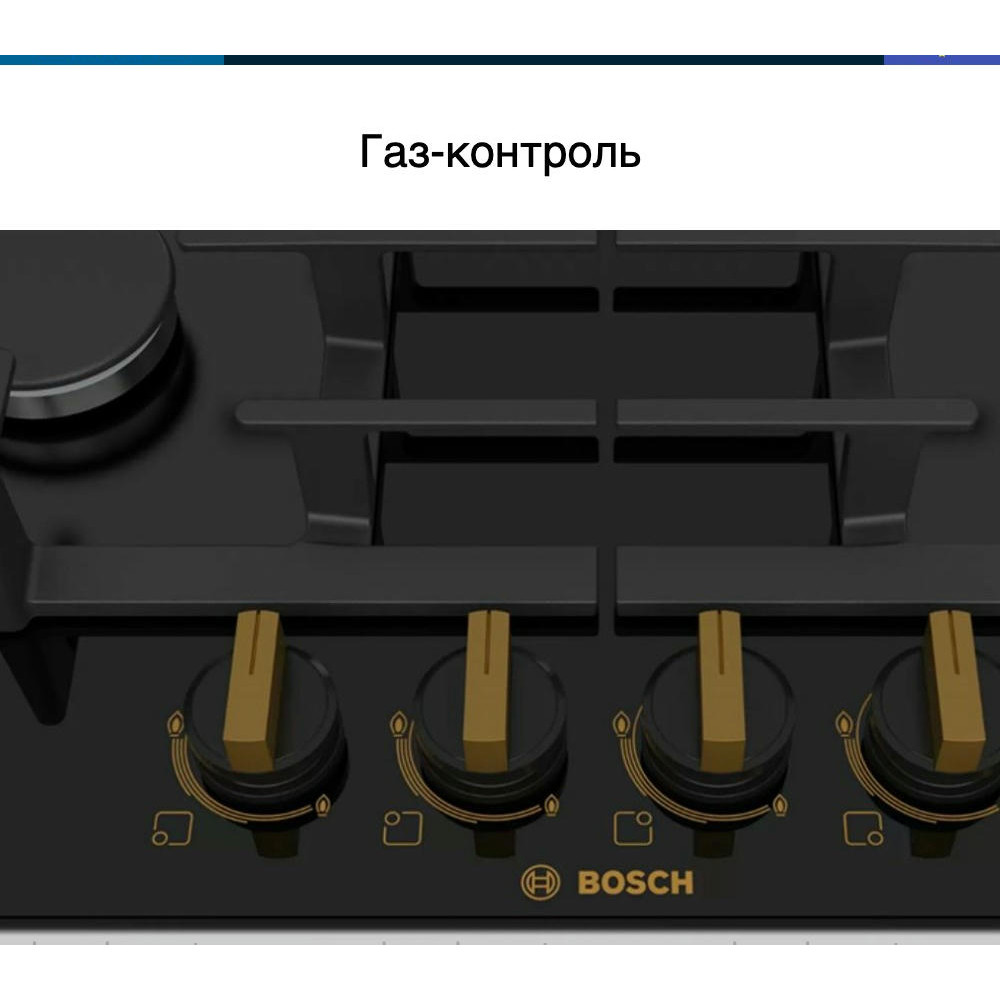 Органы управления у варочной панели Бош PPP6В690R находятся посередине оборудования, чтобы исключить риск соприкосновения с горячей посудой. Включение и управление газом осуществляется механическими поворотными ручками.