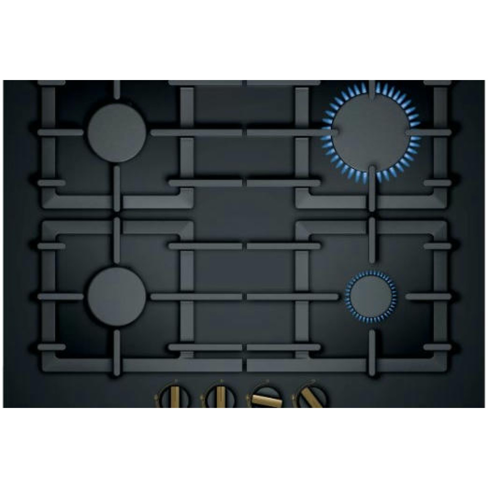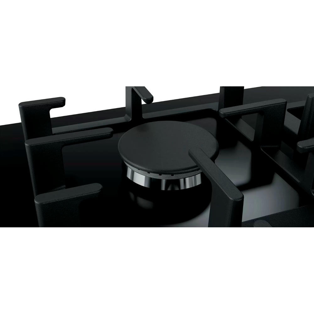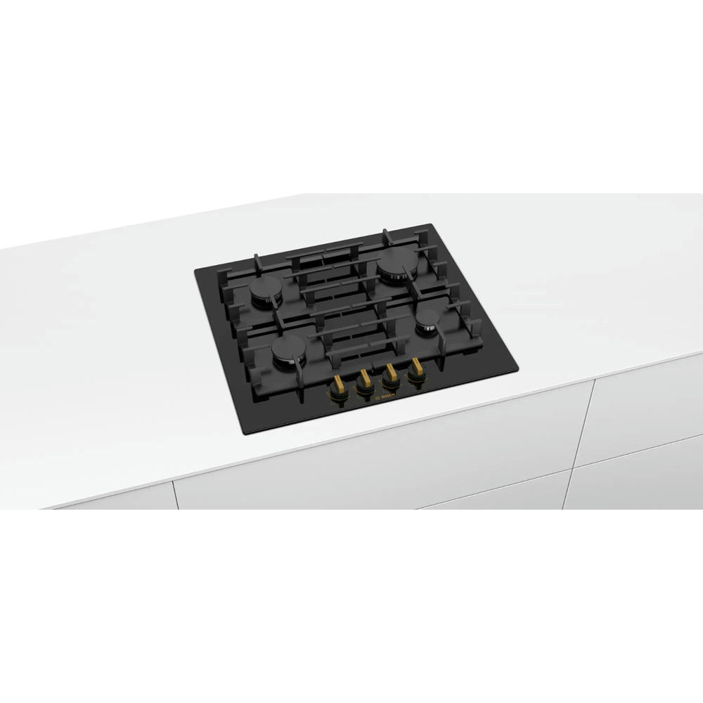 Органы управления у варочной панели Бош PPP6В690R находятся посередине оборудования, чтобы исключить риск соприкосновения с горячей посудой. Включение и управление газом осуществляется механическими поворотными ручками.