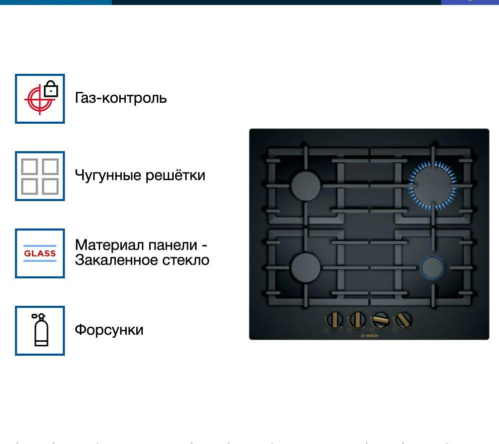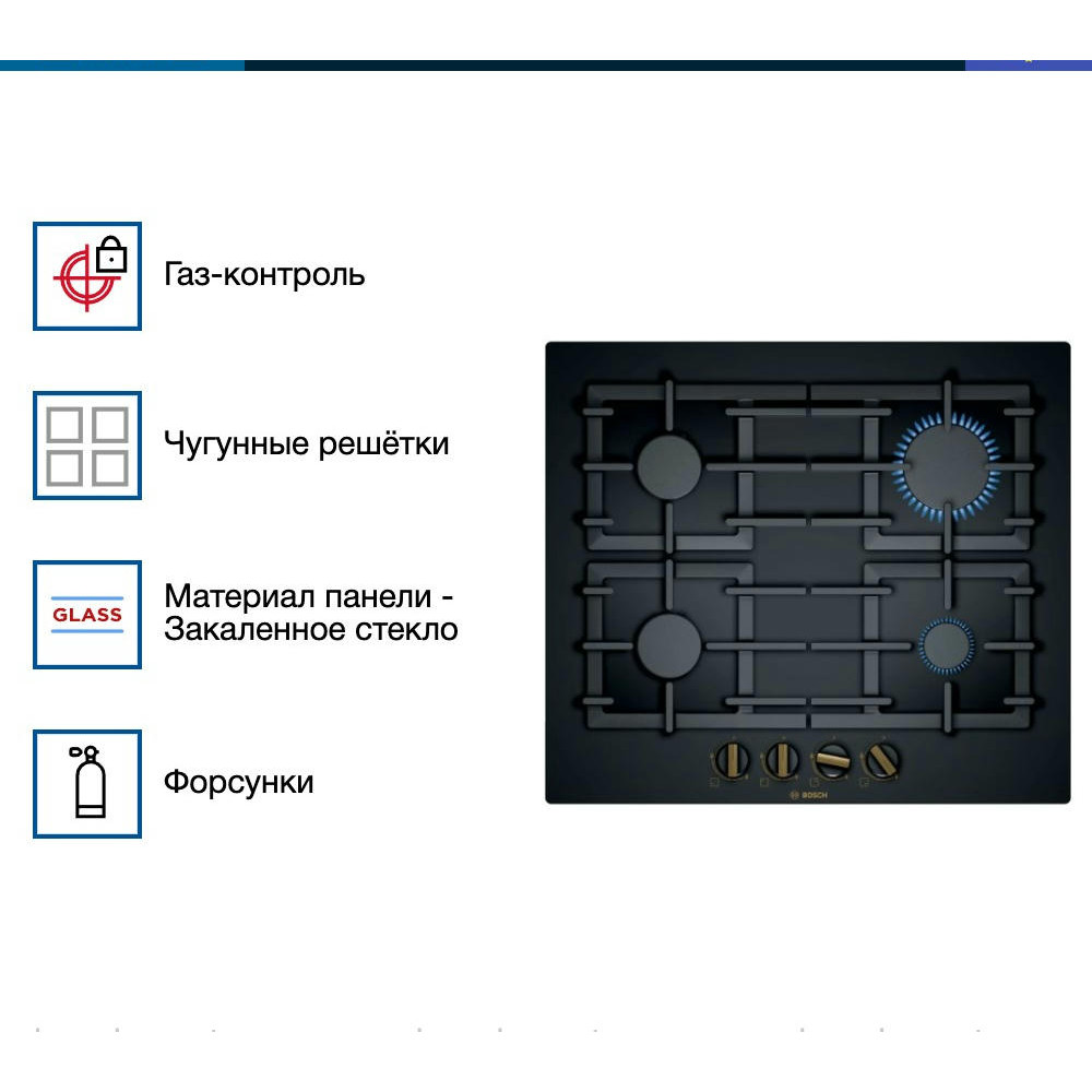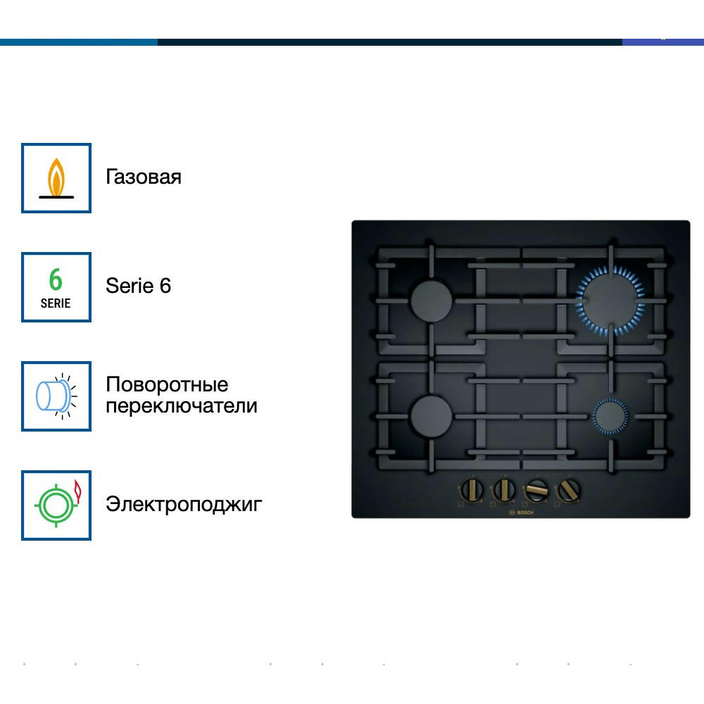 Варочная панель Bosch PPP6В690R привлекает внимание оригинальным геометрическим узором. Техника характеризуется не только дизайном, но и удобством управления и эксплуатации. Она изготовлена из закаленного стекла, а решетки — из чугуна. Это прочные материалы, за которыми просто ухаживать.