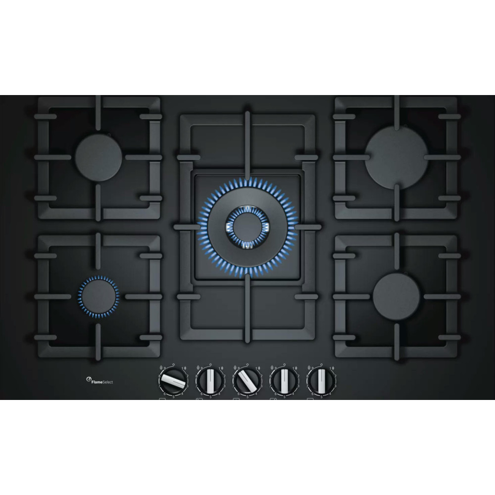 Поверхность из закаленного стекла можно установить заподлицо или слегка приподнять над столешницей. Функция FlameSelect позволяет регулировать интенсивность пламени по 9 ступеням.