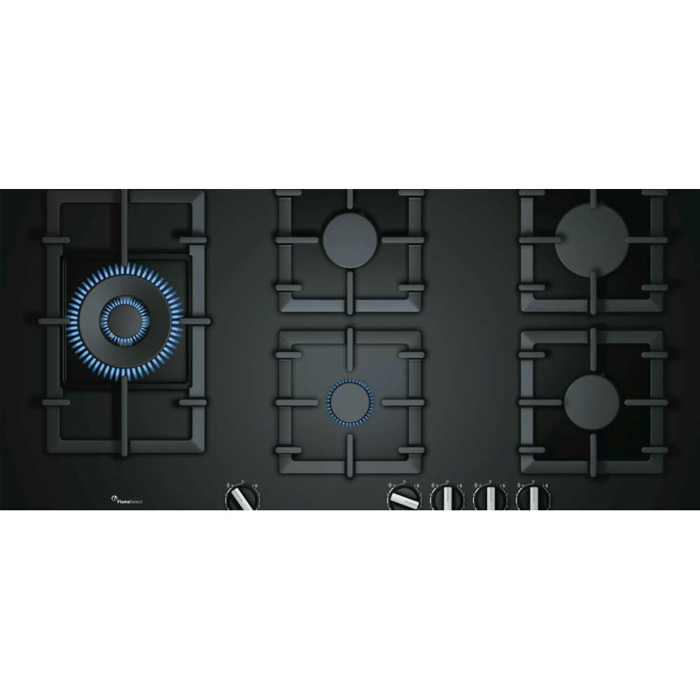 Для приготовления блюд варочная панель Бош PPS9A6B90 располагает 5 конфорками — одна мощностью 1 кВт, две мощностью 1,75 кВт, одна — 3 кВт и последняя 4 кВт. Функция FlameSelect — позволяет точно регулировать пламя газовой горелки по ступеням. Важная особенность — наличие расширенной горелки. Wok-конфорка имеет не одно, а два кольца пламени: одно внутри другого. Такая конфорка с двойной «короной» идеальна для посуды с коническим или сферическим профилем типа азиатских казанов, но подойдет и для плоскодонной посуды в случаях, когда требуется максимально ускорить процесс приготовления пищи.