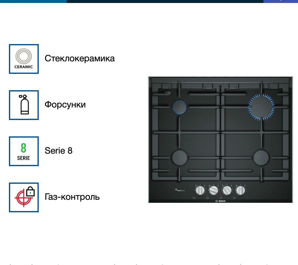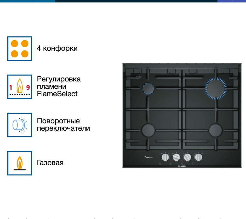 Варочная панель Bosch PRP6A6D70R выполнена из стеклокерамики. Технология FlameSelect позволит регулировать температуру пламени. Для комфортной и безопасной эксплуатации модель снабжена газ-контролем, который предотвратит утечку газа.