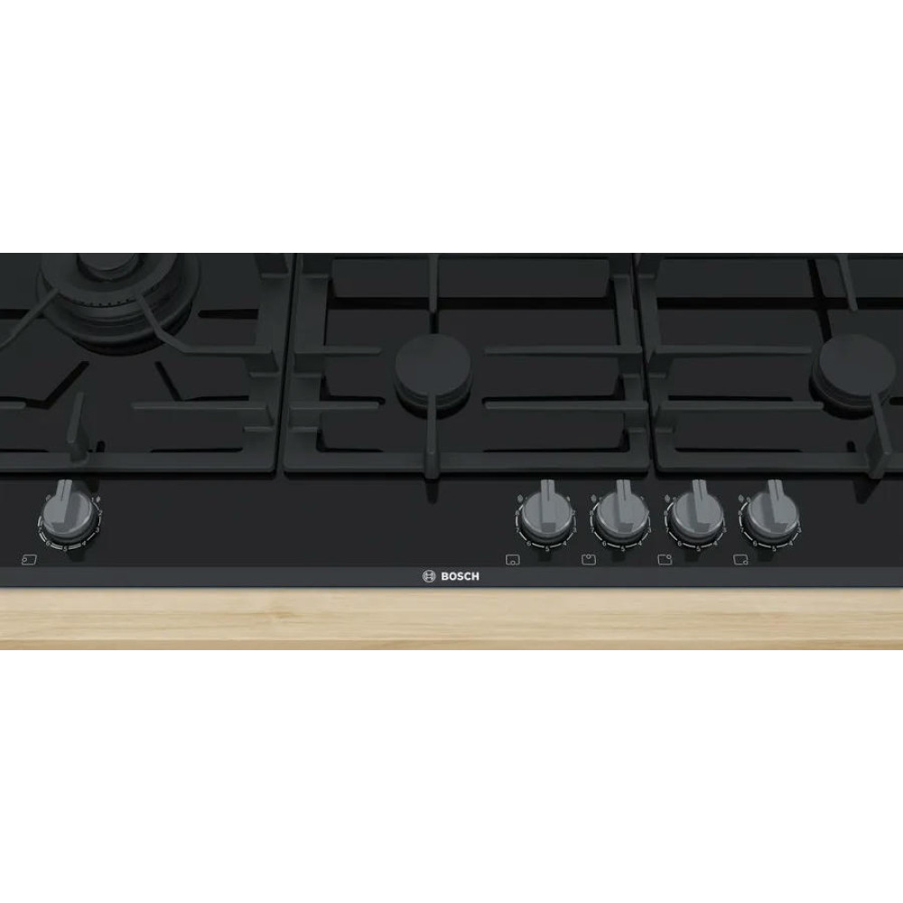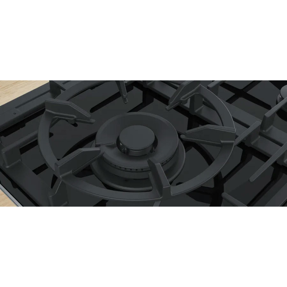 Газовая варочная панель Bosch PRS9A6B70D из серии Serie | 8 — это высокотехнологичное устройство, созданное для любителей кулинарии, которые ценят качество и стиль. Этот кулинарный помощник выполнен в строгом черном цвете, что делает его идеальным дополнением к любому интерьеру кухни. Поверхность панели изготовлена из закаленного стекла, что придает ей элегантный внешний вид и обеспечивает простоту в уходе. Скошенный край и металлический профиль по бокам подчеркивают изысканный дизайн и делают эту варочную панель не просто бытовым прибором, но и стильным элементом декора. Оснащена пятью газовыми конфорками, эта модель предлагает широкий диапазон возможностей для приготовления разнообразных блюд. Чугунные решетки обеспечивают устойчивость и долговечность, а также подчеркивают премиальный облик устройства. Управление панелью осуществляется с помощью удобных поворотных ручек, что позволяет точно регулировать интенсивность пламени.