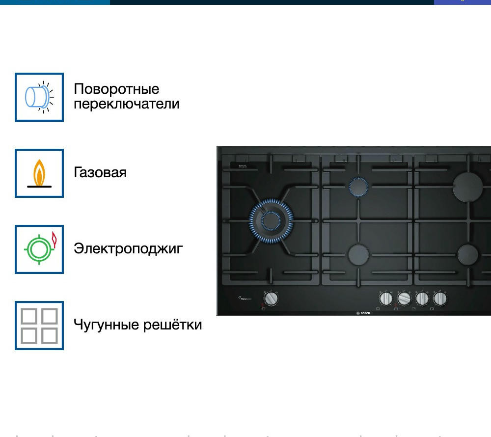 Панель Bosch PRS9A6D70M оснащена поворотными элементами управления, что делает ее использование интуитивно понятным и удобным. Габариты ниши для встраивания панели составляют 85.2 х 49-50.2 см, что позволяет легко интегрировать ее в любую кухню. Панель работает от сети напряжением 220-240 В и частотой 50-60 Гц. Панель имеет заводскую настройку на газ 28-30/37 мбар.