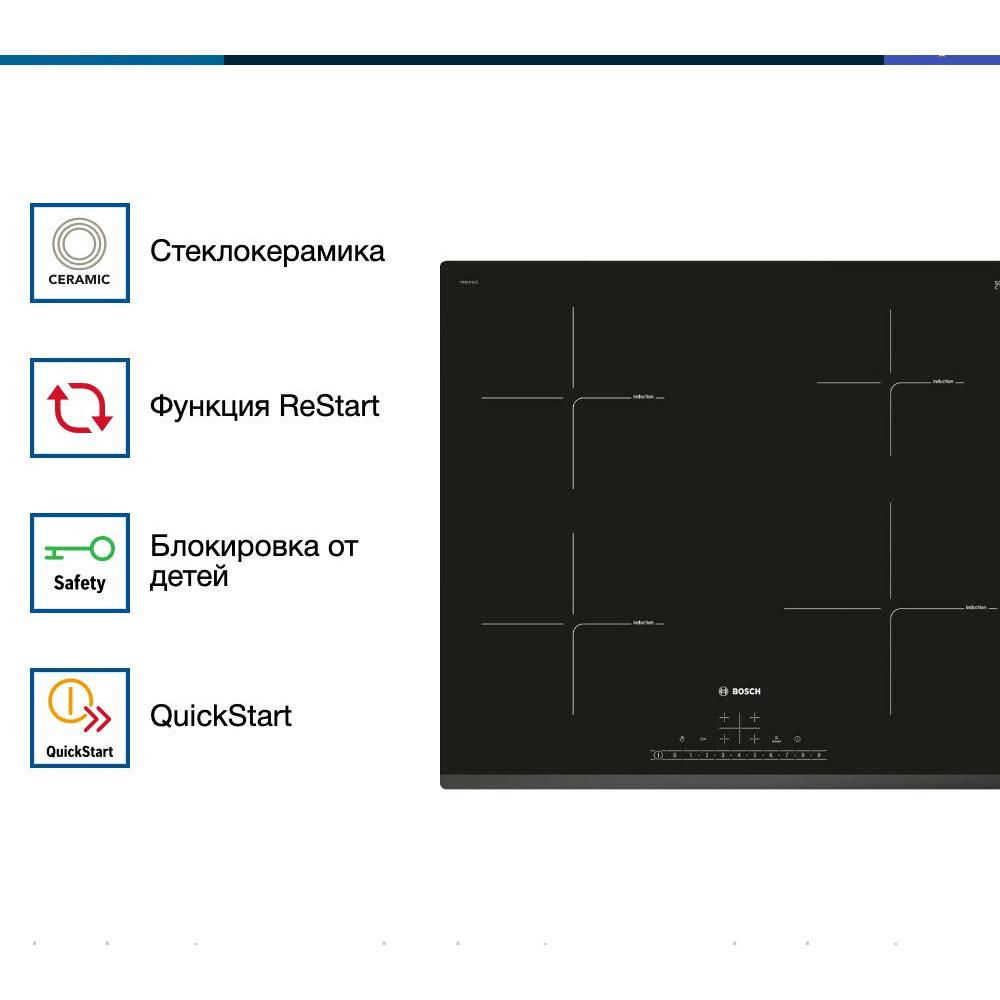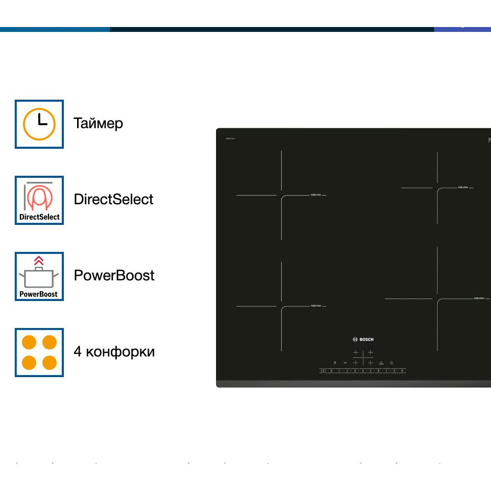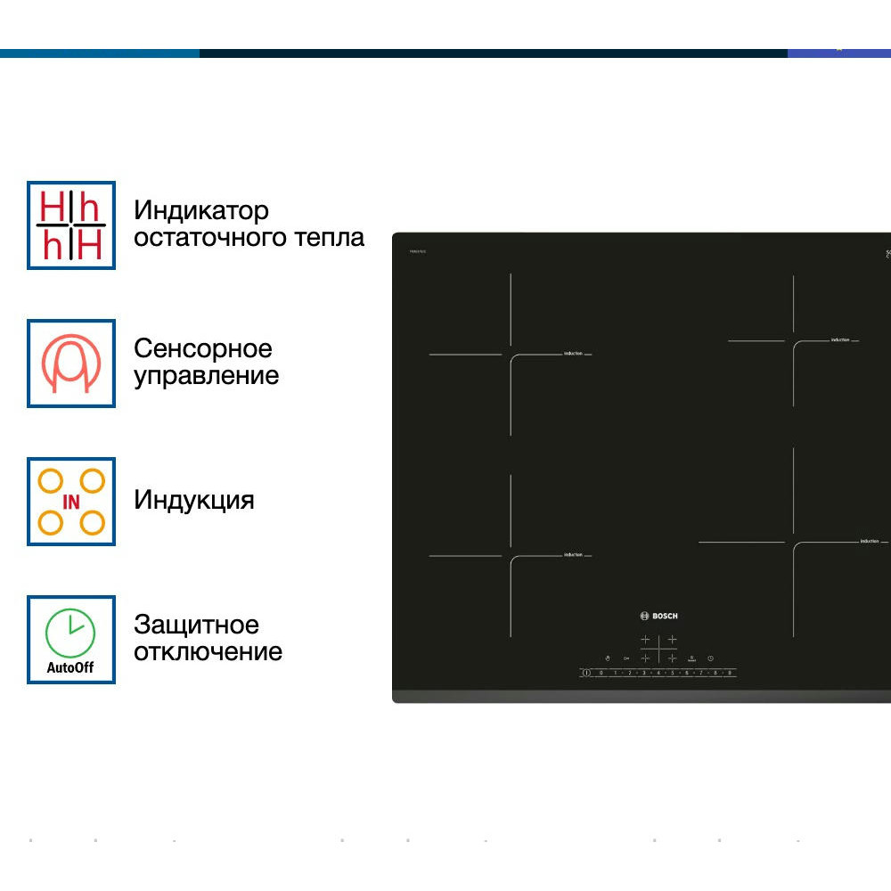 Привлекательный дизайн и эргономичность делают панель Бош PIE631FB1E отличным выбором для любого кухонного интерьера.