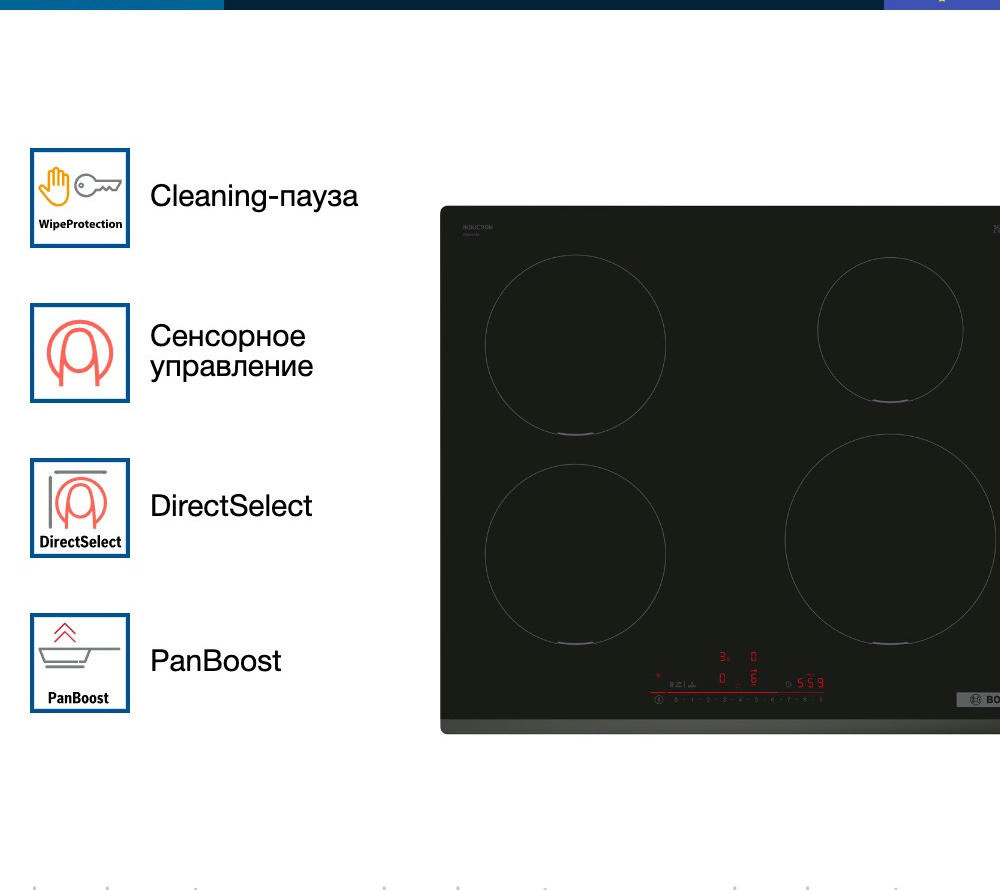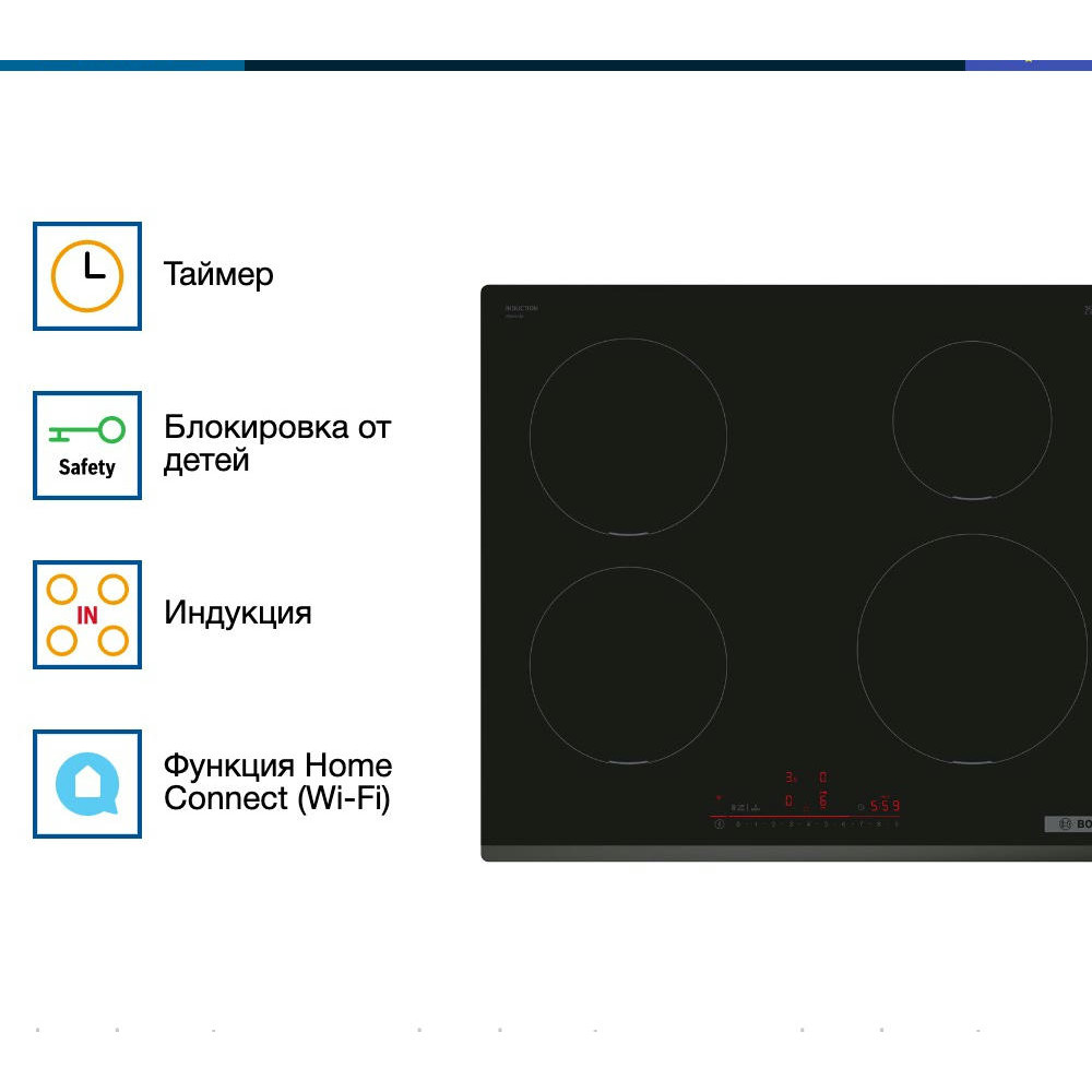 Кроме того, модель оснащена защитным отключением, блокировкой от детей и функцией Cleaning-пауза, которая обеспечивает безопасность и удобство использования. Индикатор остаточного тепла позволяет контролировать состояние панели после приготовления пищи. Функция Home Connect позволяет управлять панелью с помощью смартфона или планшета. Это удобное и современное решение для тех, кто ценит комфорт и технологичность. Гарантийный срок на панель составляет 12 месяцев, что подтверждает высокое качество и надежность модели.