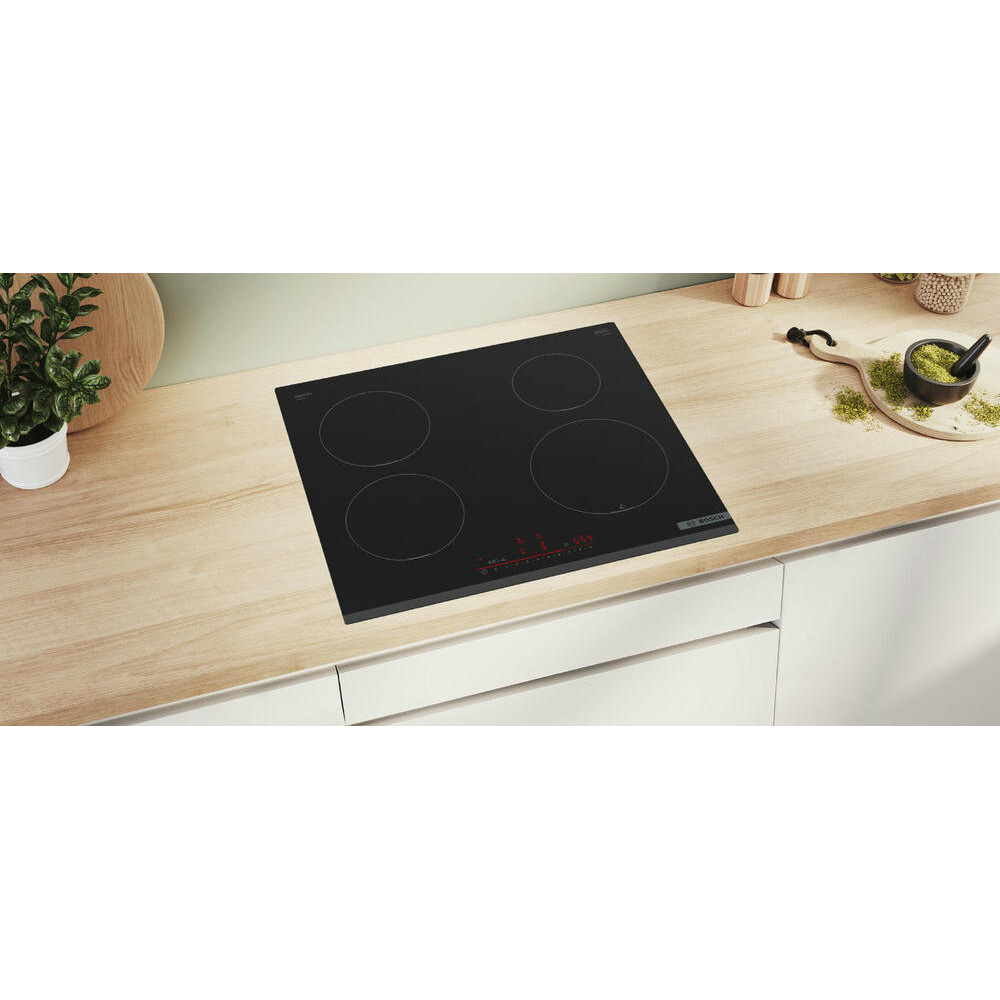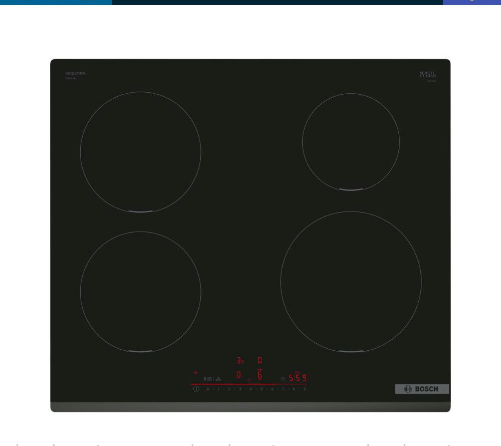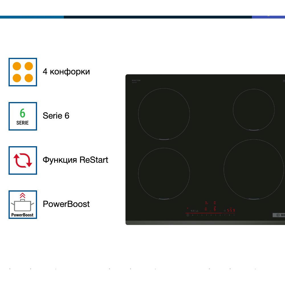 Индукционная варочная панель Bosch PIE631HB1E - современное решение для вашей кухни. Модель оснащена четырьмя конфорками, что позволяет одновременно готовить несколько блюд. Уникальная черная поверхность панели придает ей элегантный и стильный вид. Сенсорное управление и TFT-дисплей обеспечивают удобство и простоту использования. Функция распознавания посуды автоматически определяет размер и положение посуды на панели, что позволяет эффективно использовать энергию.