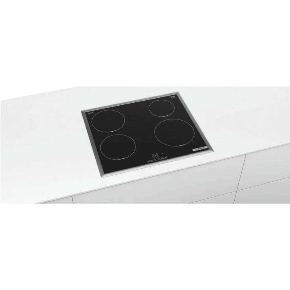 Варочная панель Bosch PIE645BB5E представлена в элегантном черном цвете. От случайного включения поможет «Блокировка от детей». Таймер с функцией отключения для каждой конфорки, просто задайте время приготовления и таймер отключит выбраную конфорку.