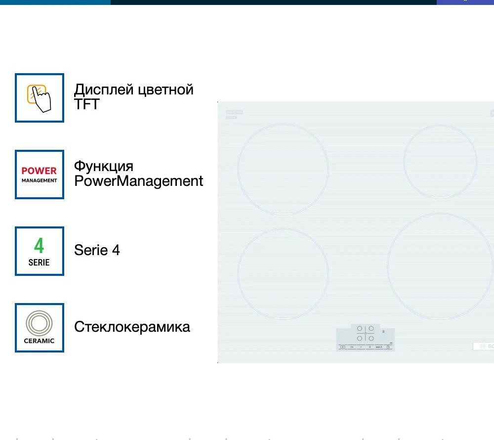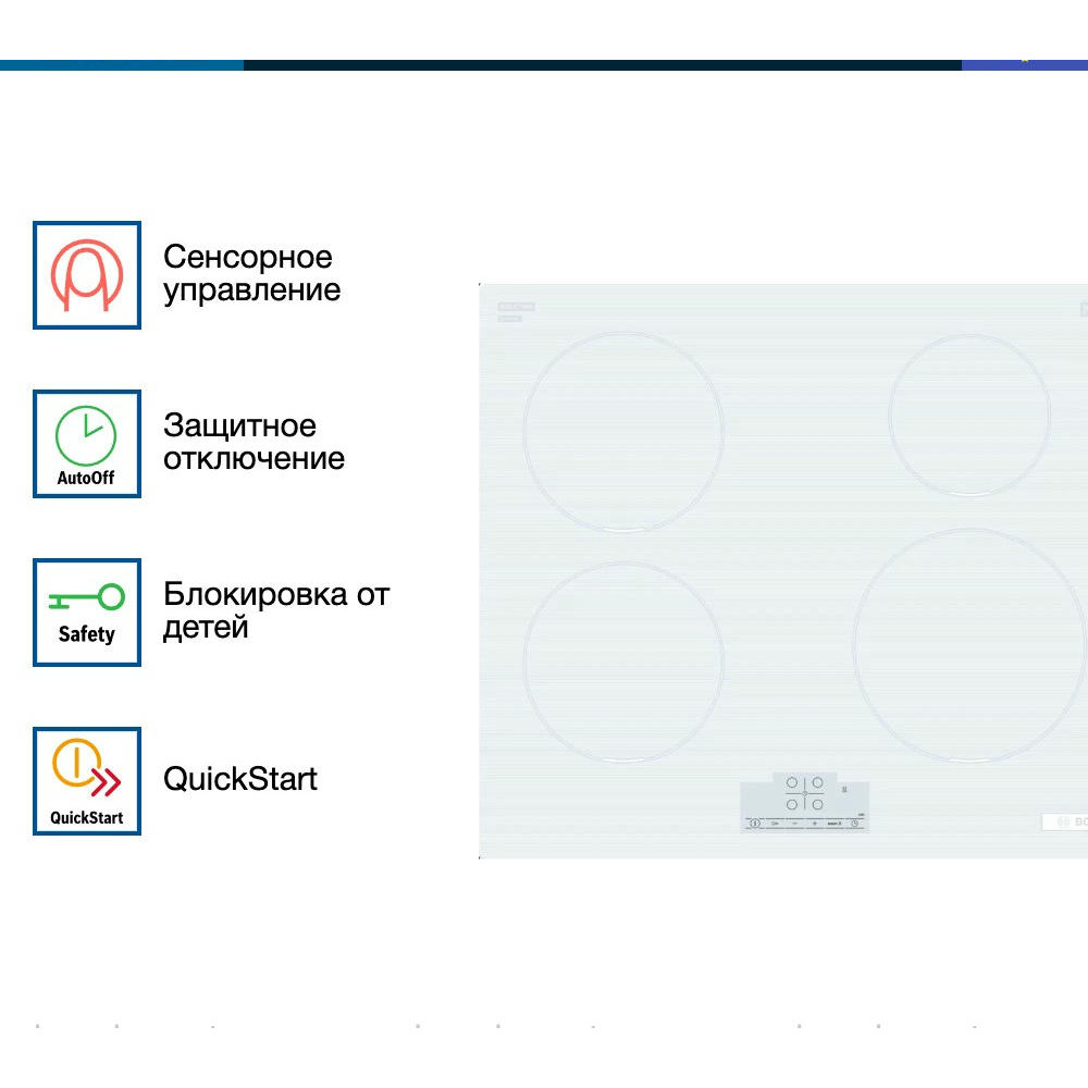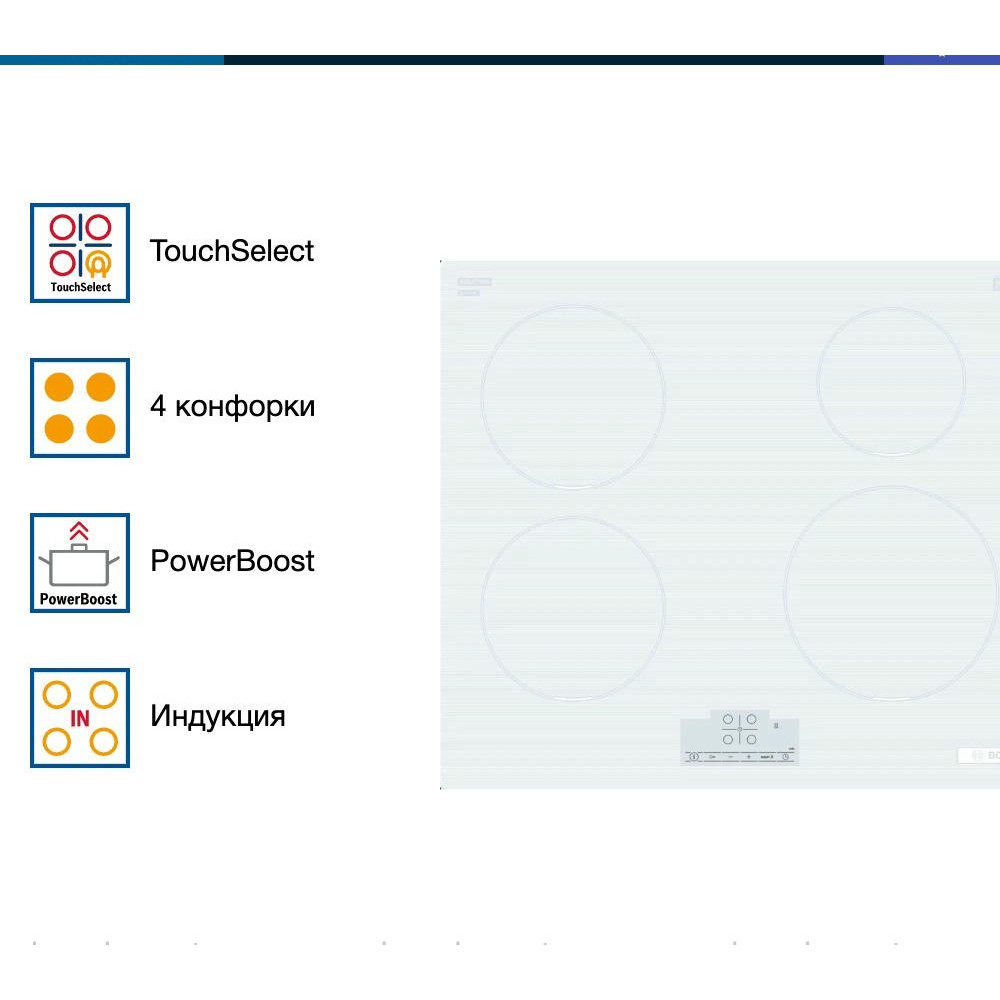 Индукционная варочная панель Bosch PUE612BB1J отличается своим уникальным дизайном и функциональностью. Панель может быть установлена вровень со столешницей, что придает кухне эстетический и современный вид. Основным материалом для этой модели является стеклокерамика, которая обладает высокой прочностью и устойчивостью к повреждениям. Белый цвет панели придает ей элегантность и изящество, делая ее центром притяжения внимания на кухне. Сенсорные элементы управления и TFT дисплей делают использование панели удобным и интуитивно понятным.