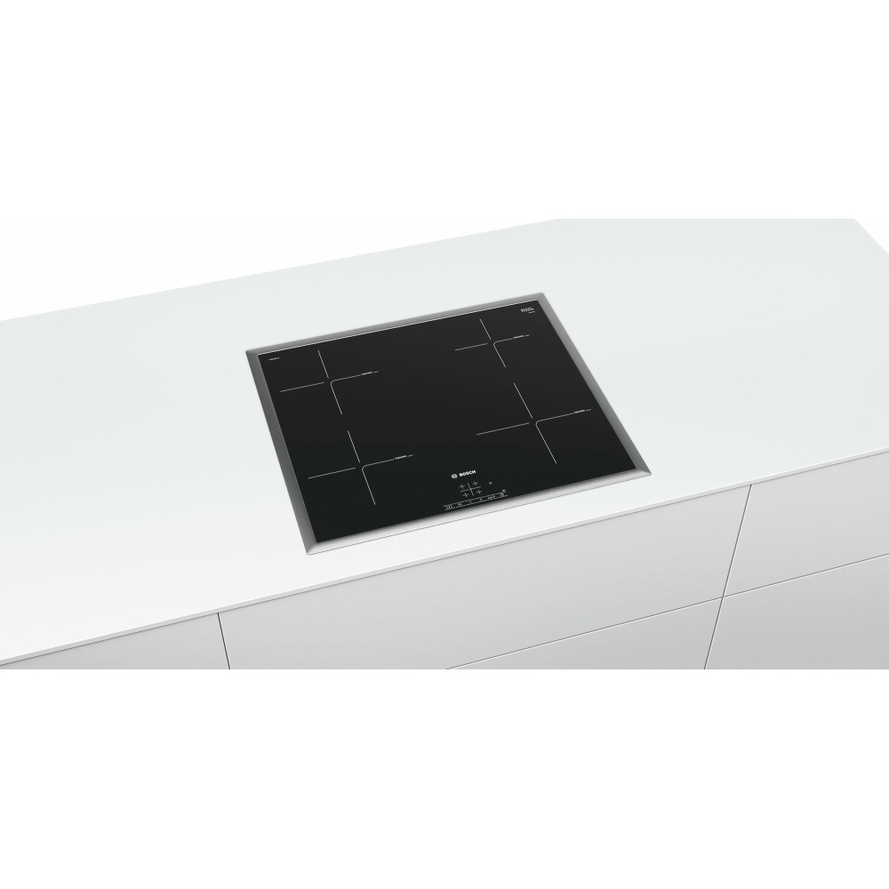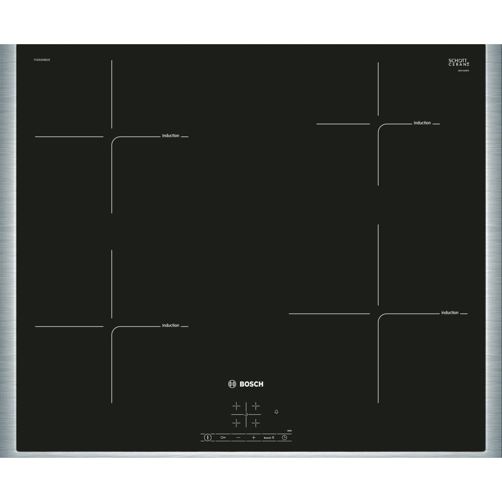 Чёрная глянцевая стеклокерамическая поверхность Бош PUE645BB1E смотрится очень красиво, а уход за ней не потребует больших усилий, ведь остатки пищи на индукционной плите не пригорают. Для сохранения эффектного внешнего вида важно использовать специальные чистящие средства, не оставляющие царапин.