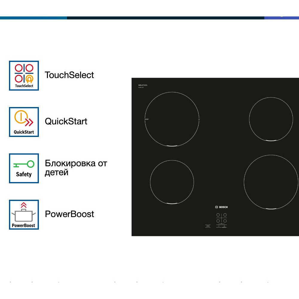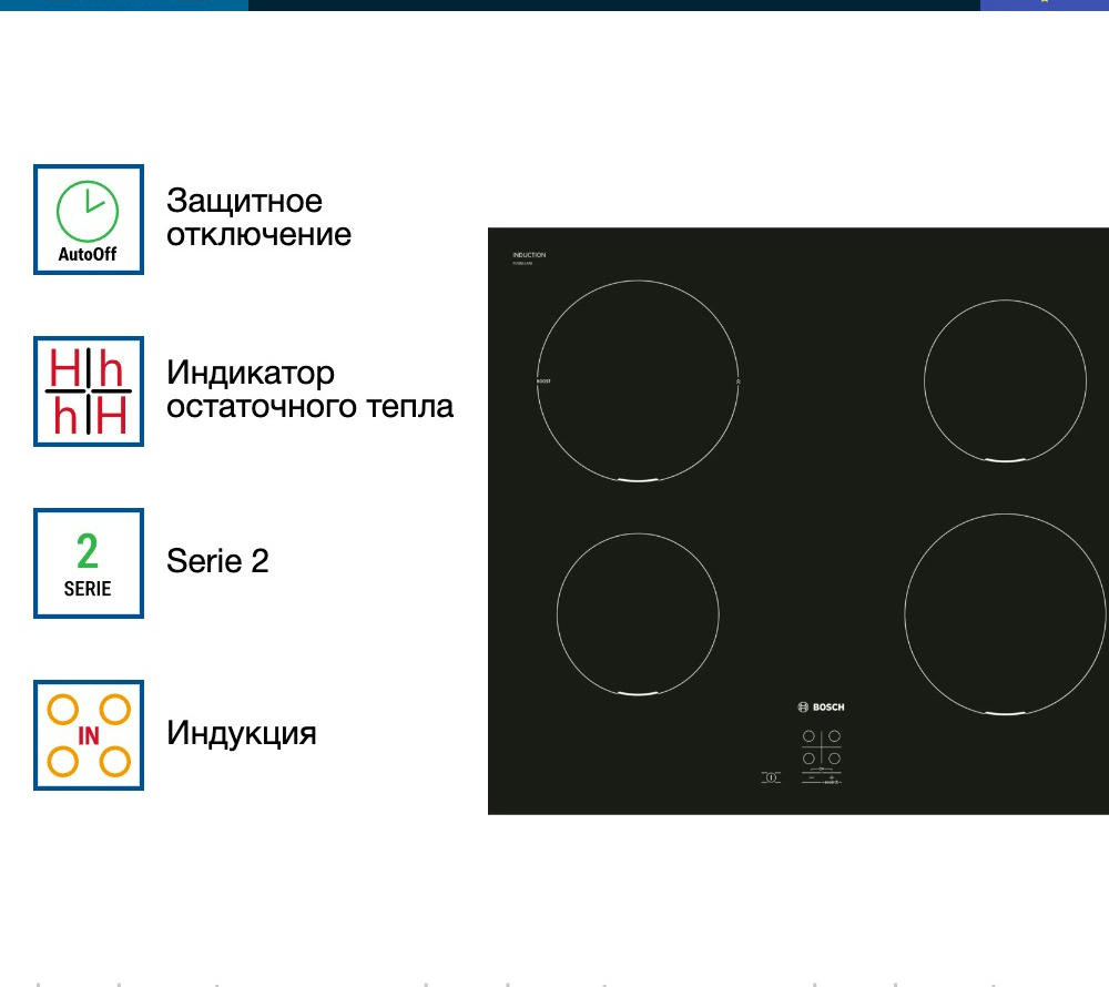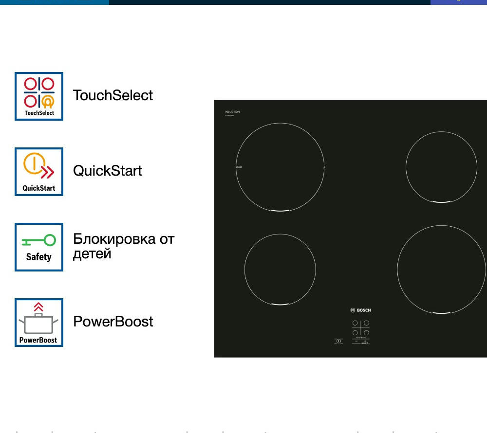 Функция PowerBoost кратковременно увеличивает мощность нагрева, чтобы быстро вскипятить большой объем воды или разогреть сковороду, если Вы очень спешите. Модель оснащена 4 конфорками. Подбирать посуду под размер конфорки не нужно, так как система автоматически определит, какую площадь зоны нагревать, чтобы тепло не расходовалось впустую.