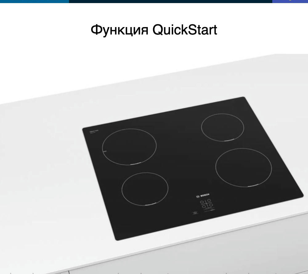 В панель встроена функция QuickStаrt, с помощью которой конфорка сама активируется, если на ней установлена посуда.