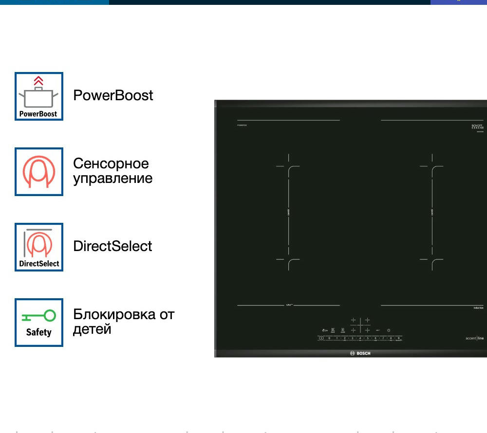 Все эти функции и особенности делают варочную панель Bosch PVQ695FC5Z идеальным выбором для любой современной кухни. Стильный дизайн, высокая функциональность и надежность - все это вы получите, выбрав эту модель.