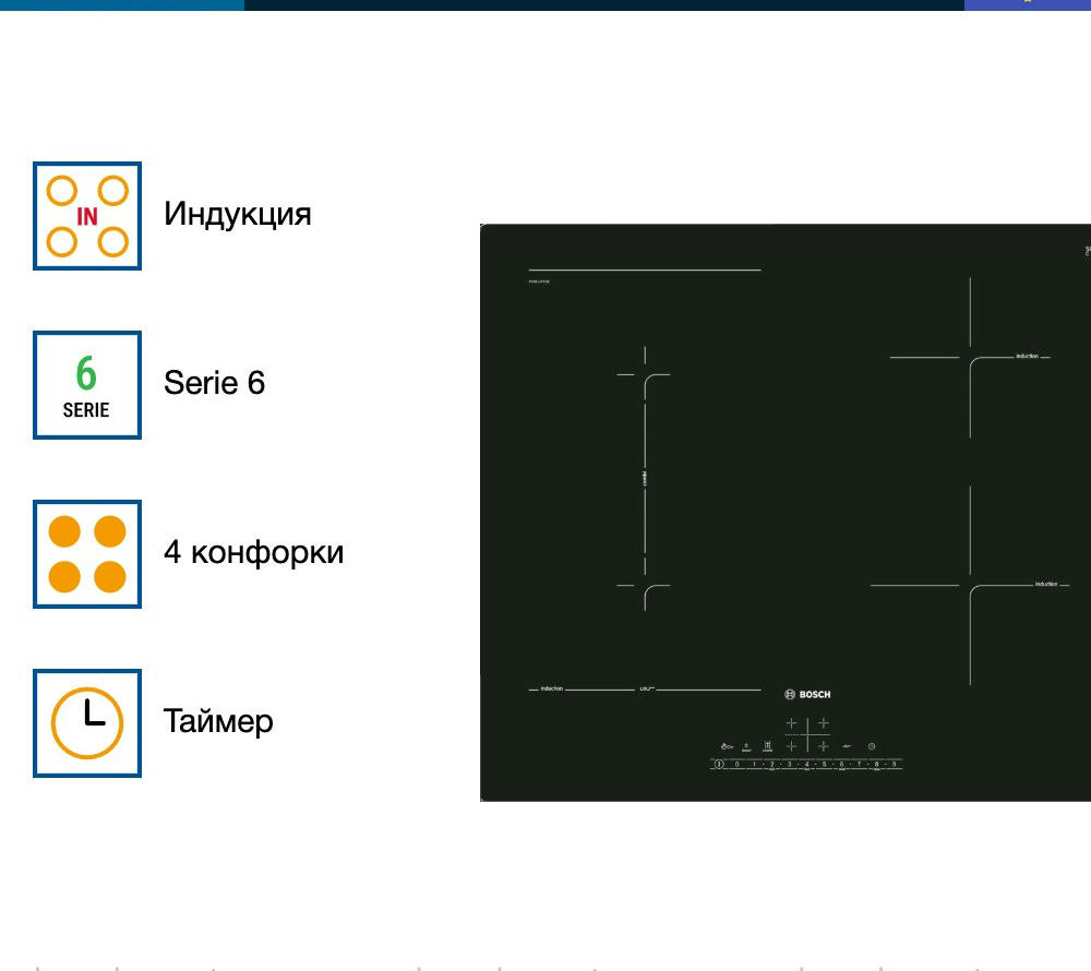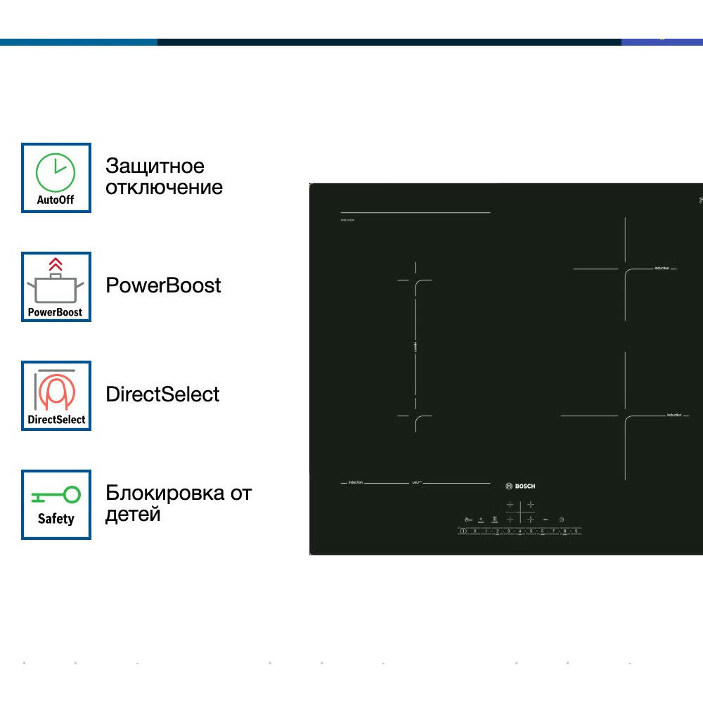 Варочная панель Bosch PVS611FC5Z оснащена функцией ReStart при непроизвольном выключении устройства, настройки восстановятся при следующем запуске. CombiZone позволяет объединить две конфорки в одну и вы можете готовить в посуде нестандартных размеров. PerfectFry отслеживает уровень нагрева и предотвращает пригорание блюда.