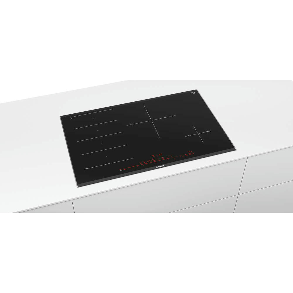 Варочная панель Bosch PXE875DC1E оснащена функцией PowerBoost при ее активации вся мощь переходить на 1 зону нагрева, это удобно, если вам надо вскипятить воду за считанные минуты. Restart сохранит ваши настройки, после непредвиденного отключения устройства. FlexInduction позволяет объединить 2 зоны нагрева в одну, удобно для приготовления на разных по типу размером посуды.