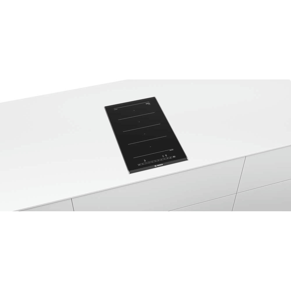 Панель Bosch PXX375FB1E имеет компактные размеры (высота - 5.1 см, ширина - 30.6 см, глубина - 52.7 см) и встраивается в нишу размерами 49 х 27 см. При этом минимальная толщина столешницы составляет 20 мм. Панель работает от сети 220-240 В, частота - 50-60 Гц. Мощность подключения составляет 3700 Вт, а суммарная мощность конфорок - 4.4 кВт.