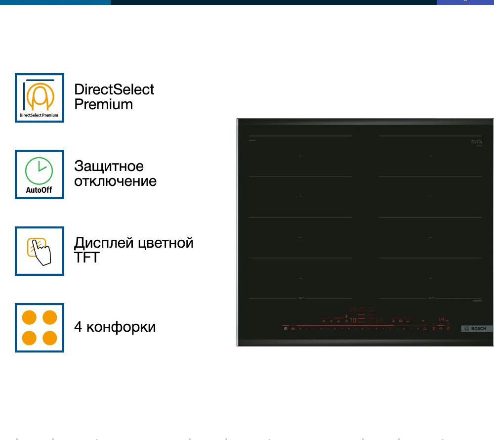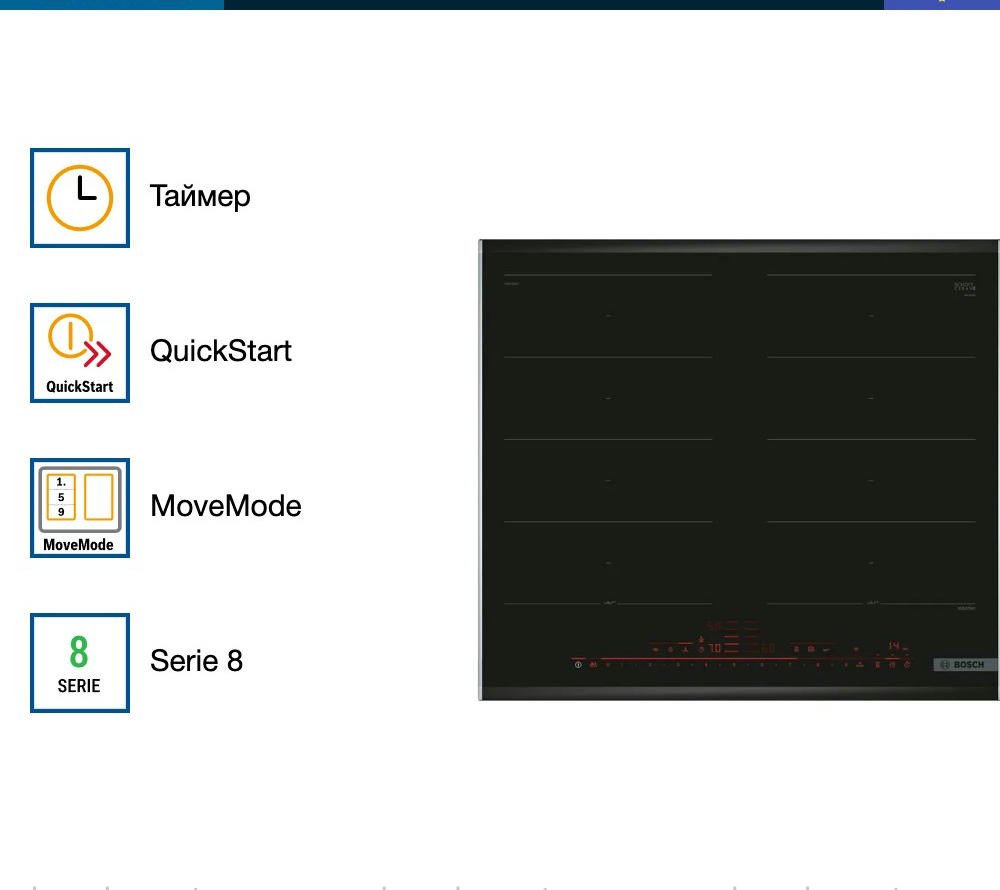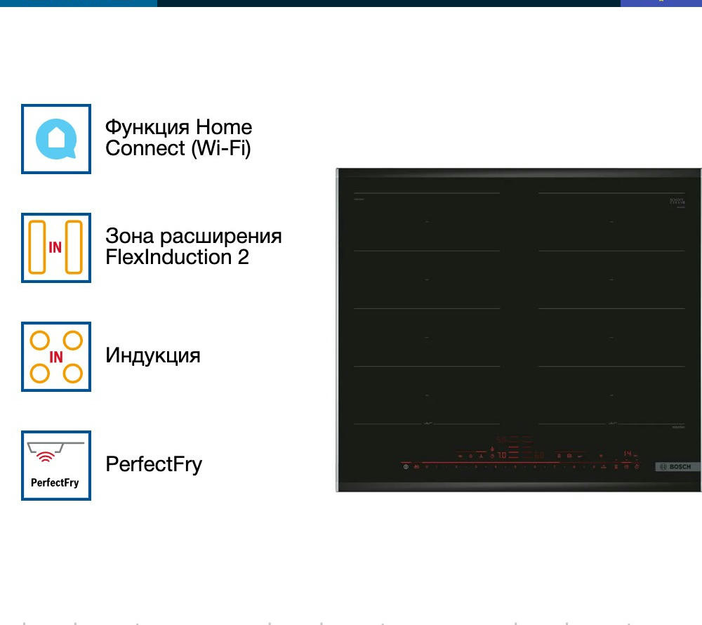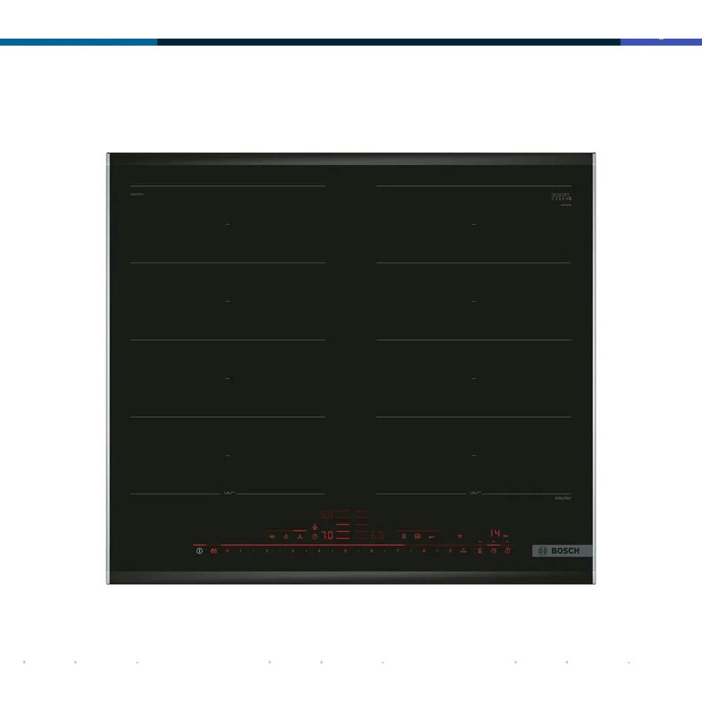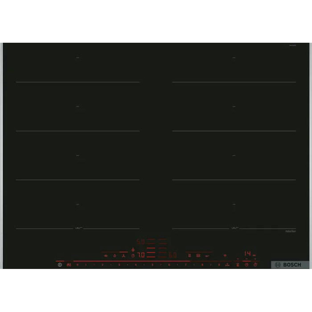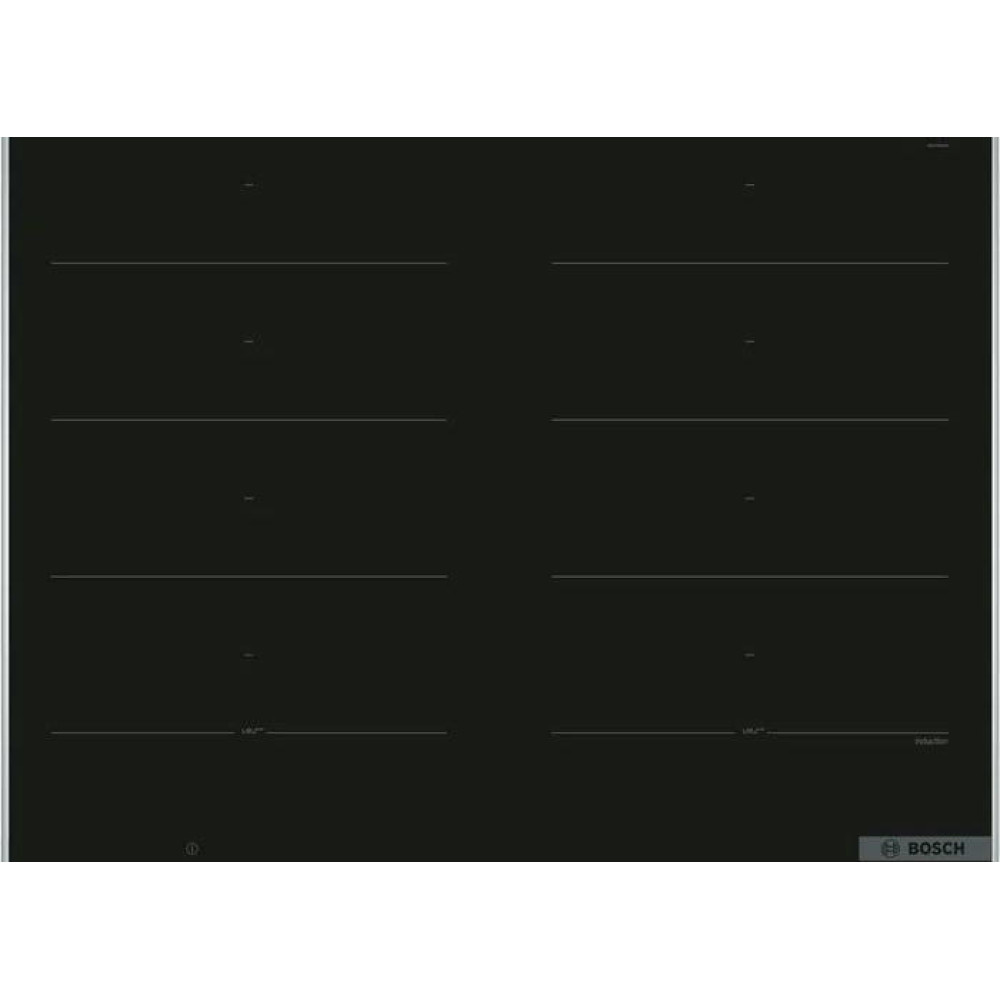 Варочная панель Bosch PXX675DV1E из линейки FlexInduction позволяет объединять четыре конфорки в две независимые или одну большую зону нагрева. Автоматически активируются только те индукторы, над которыми находится посуда, что минимизрует расход электроэнергии.