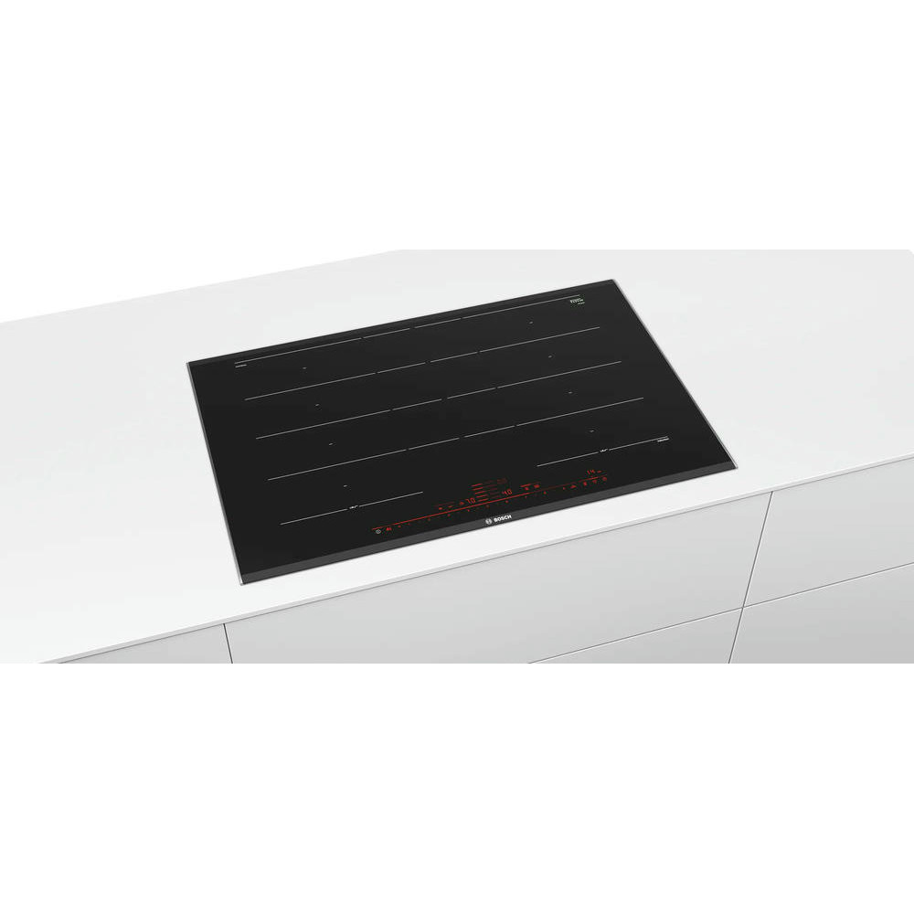 Варочная панель Bosch PXY875DE3E оснащена функцией FlexInduction, вы можете объединять все зоны нагрева в одну, это очень удобно для разных диаметров посуды. PerfectCook отслеживает температуры вашего устройства, тем самым предотвращая подгорание блюда. С PowerBoost вы можете увеличить мощь конфорки и вскипятить воду в считанные минуты.