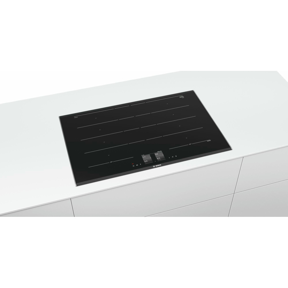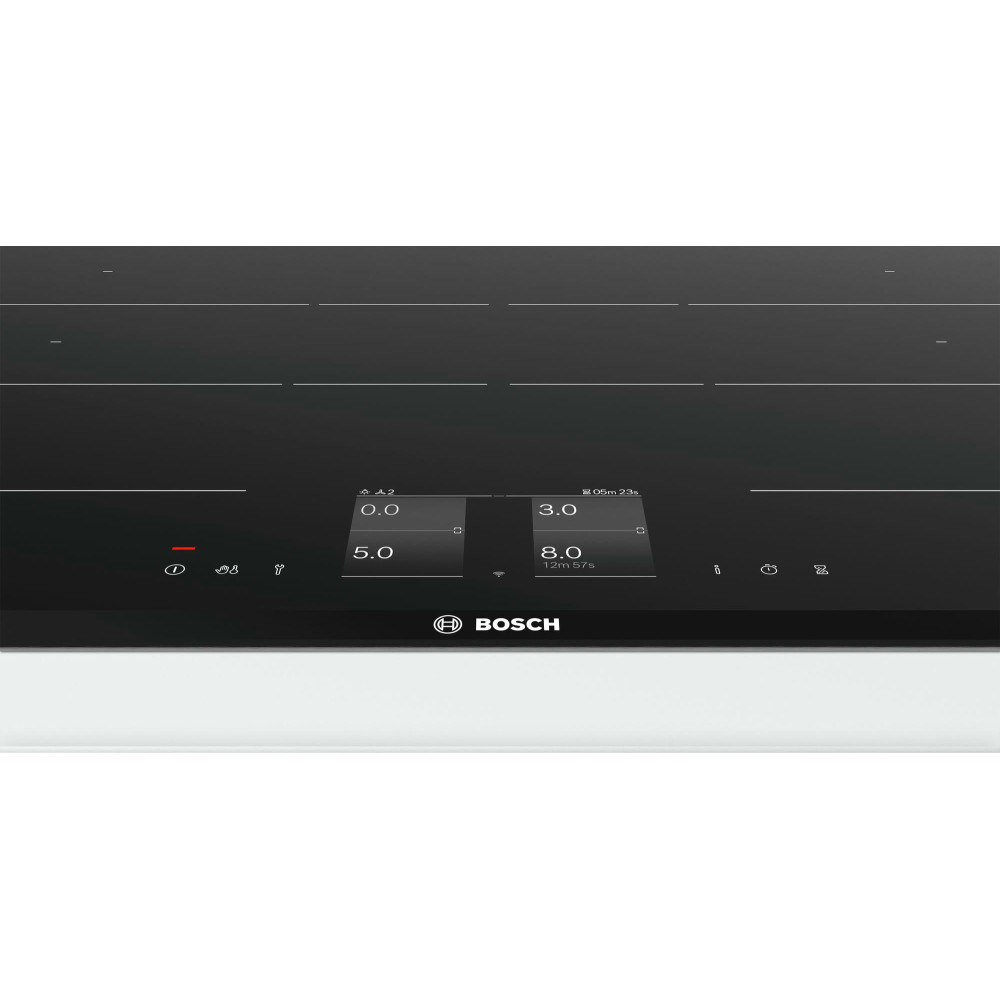 Bosch PXY875KW1E — это индукционная варочная поверхность на четыре конфорки, которые могу попарно объединяться в зоны FlexInduction. Выполнена из стеклокерамики чёрного цвета. Управляется при помощи сенсорных кнопок. Предусмотрено 17 ступеней нагрева. Безопасность эксплуатации обеспечивает блокировка от детей, индикация остаточного тепла и автоматическое отключение.