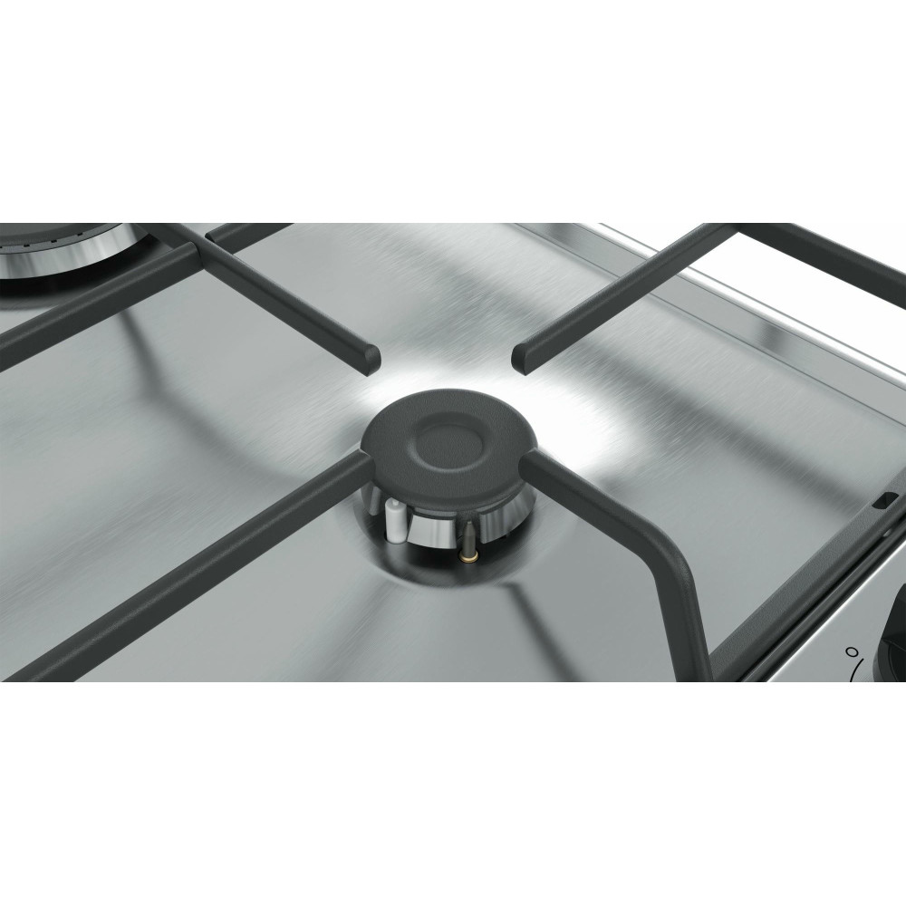 Управление расположено на фронтальной панели, спереди находится экономичная конфорка, мощная — позади. Автоматический электроподжиг и термоэлектрическая защита от утечки газа делают варочную панель удобной и безопасной в использовании.