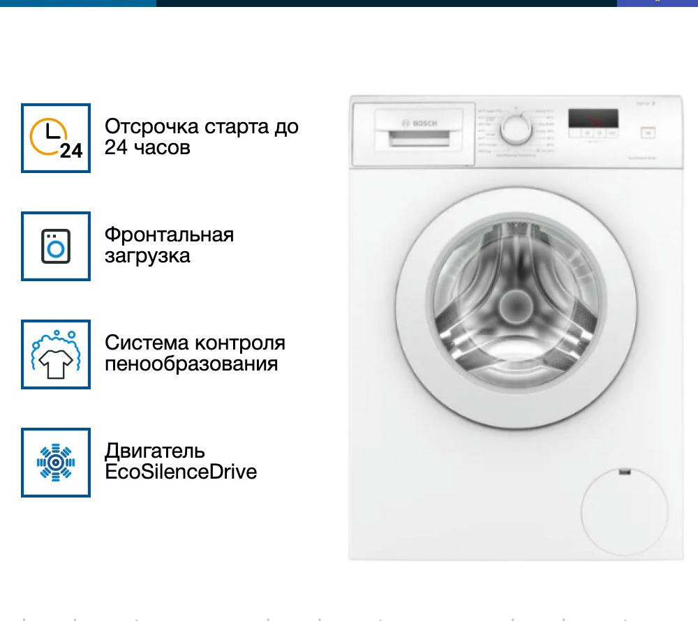 Запуск программы можно отложить от 1 до 24 часов. Специальный индикатор информирует о времени до окончания работы. Системы защиты от пены, предотвратит проблемы с ремонтом вашей стиральной машины. Случайный избыток пены не проникнет в электронную панель управления. Важно отметить, что есть специальная система, которая подстраивает температуру воды и расход энергии под установленное время стирки. Такой товар понравится каждому пользователю.