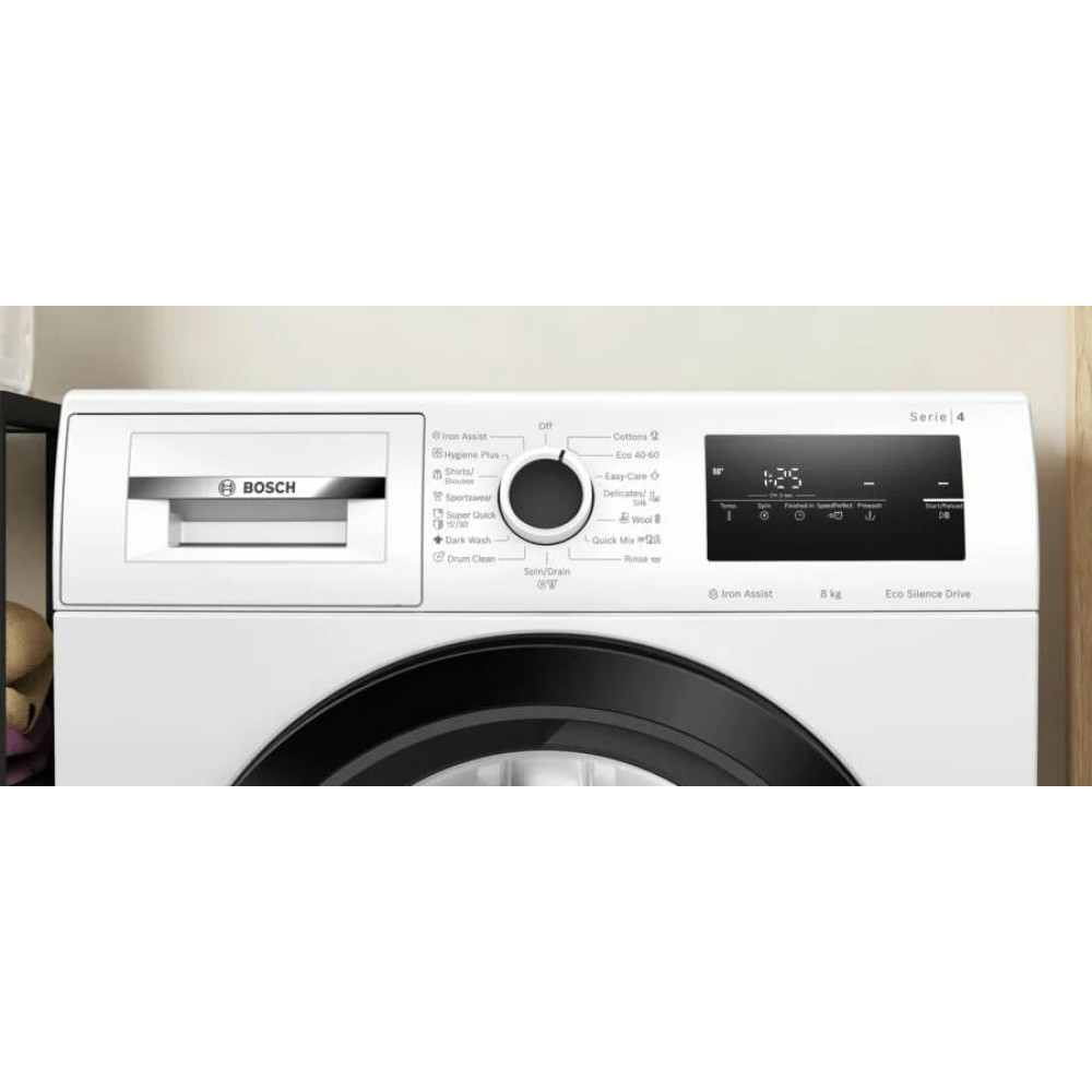 Стиральная машина Bosch WAN24168BY сочетает сдержанный внешний вид и продуманную эргономику: аккуратный белый корпус органично впишется в любой интерьер, а утончённый фронтальный фасад с большим люком обеспечивает удобный доступ к барабану. Высокая вертикальная линия панели управления подчёркивает современность решения — электронная система с поворотным переключателем и сенсорными элементами упрощает выбор опций и режимов, а многофункциональный LED-дисплей отображает ход программы и оставшееся время, чтобы пользователь всегда видел текущий статус цикла. Компактные размеры при высоте 84,5 см, ширине 59,8 см и глубине 59 см делают агрегат подходящим для стандартных ниш, при этом глубина с открытой дверцей достигает 106.3 см, что стоит учитывать при планировке пространства.