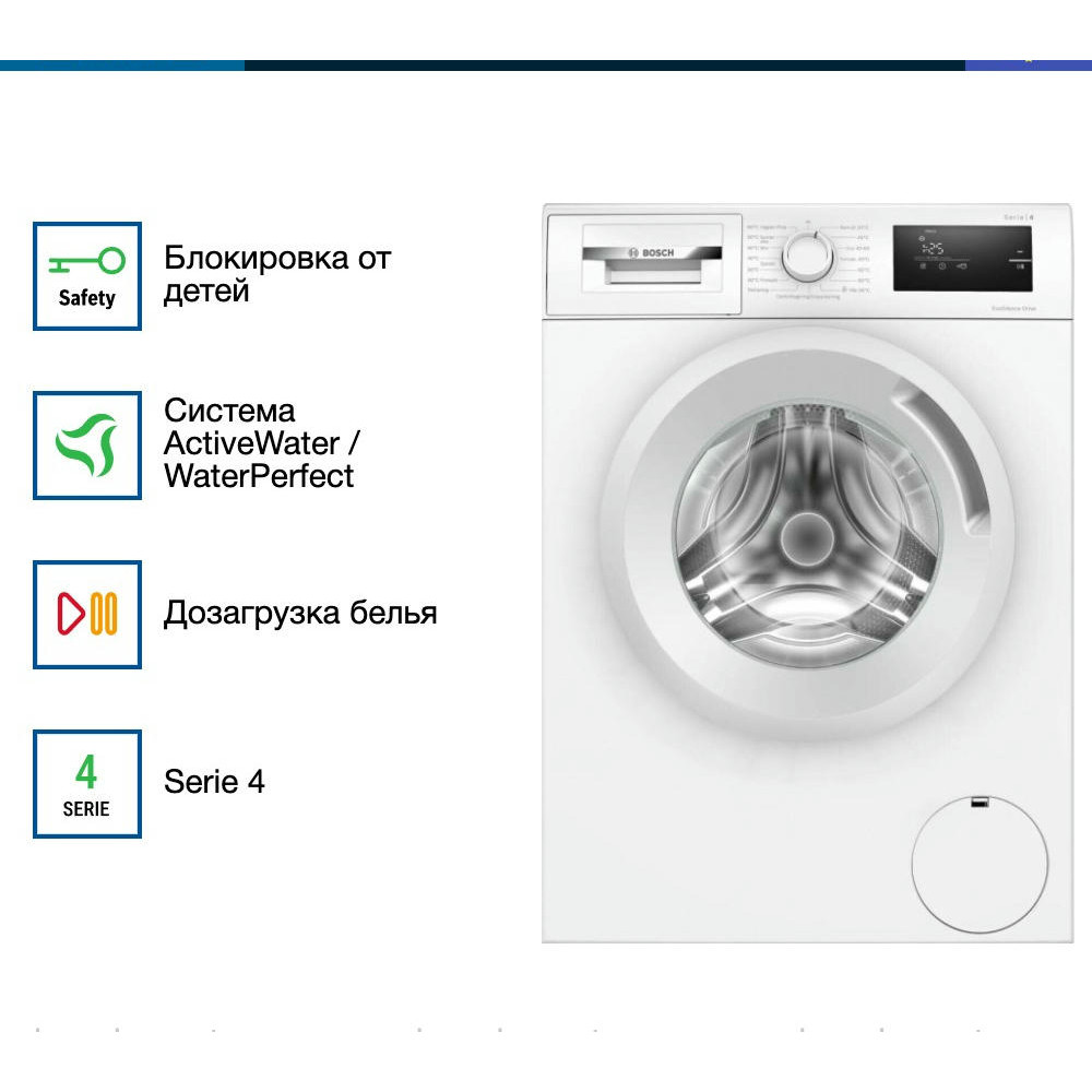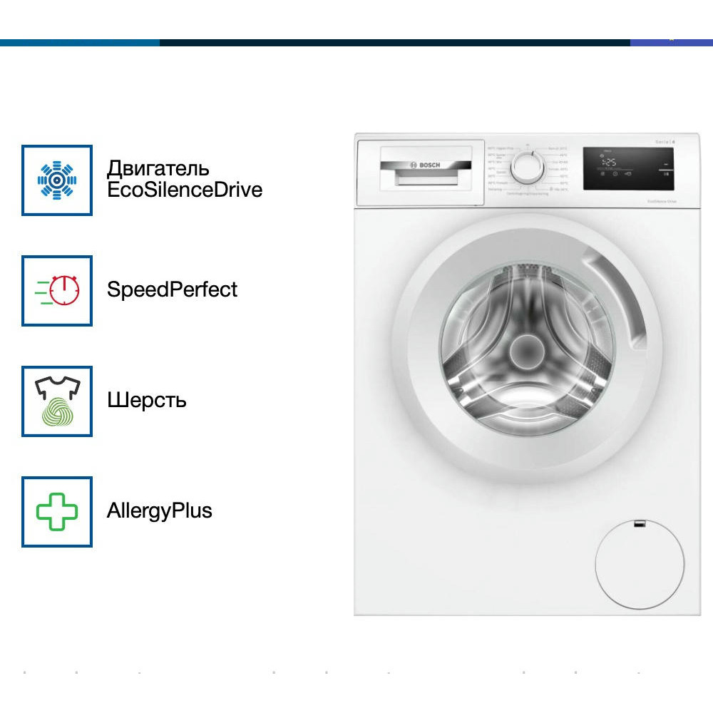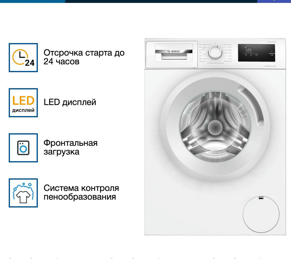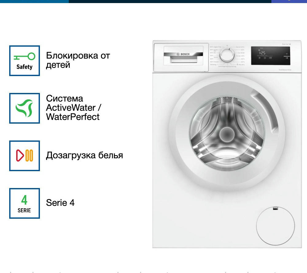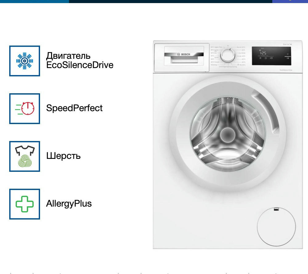 Управление стиральной машиной Бош WAN280L5SN осуществляется с помощью поворотного переключателя, кнопок и электронного дисплея. На нём вы можете видеть ход выполнения программы, время программы и необходимые настройки. Специальный режим «Деликатные ткани» — это программа, которая создана для ухода за вещами, сделанными из особенных тканей. Обычно техника использует температуру, не превышающую 40 градусов, а также максимально бережный отжим (можно запрограммировать работу и без него) и большое количество воды. Это обеспечивают наилучший результат.