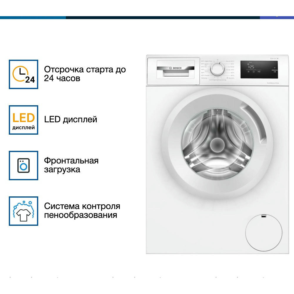 Стиральная машина Bosch WAN280L5SN — это отдельно стоящая модель, выполненная в белом цвете с черными элементами на панели управления. Она обеспечит качественную стирку всех типов одежды и белья. Оборудование имеет 15 автоматических программ стирки. В барабан машинки можно поместить до 7 кг вещей, а значит она удобна для семейного использования. При этом за один цикл стирки расходуется всего 55 л воды. Белье загружается через фронтальный люк, что очень удобно. При необходимости можно отложить стирку на более подходящее время с помощью функции отсрочки запуска. При окончании стирки прозвучит звуковой сигнал.