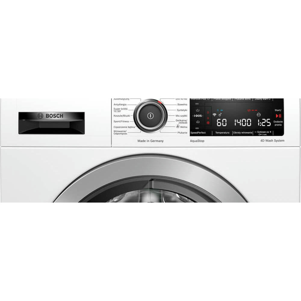 Стиральная машина Bosch WAVH8K92PL оснащена электронным управлением с поворотным переключателем и многофункциональным LED-дисплеем, который отображает все необходимые параметры работы: ход программы, время до окончания стирки, максимальную загрузку для выбранной программы. После завершения программы звучит акустический сигнал, что очень удобно для пользователя. Максимальная загрузка при стирке составляет 9 кг, что позволяет стирать большое количество белья за один цикл. Максимальная скорость отжима достигает 1400 об./мин., что обеспечивает эффективное удаление влаги из белья. Устройство оснащено 13 программами стирки, включая предварительную стирку, стирку хлопка, синтетики, смешанного белья, деликатного белья, шерсти и т.д. Также есть специальные программы для антиаллергенной стирки и очистки барабана.