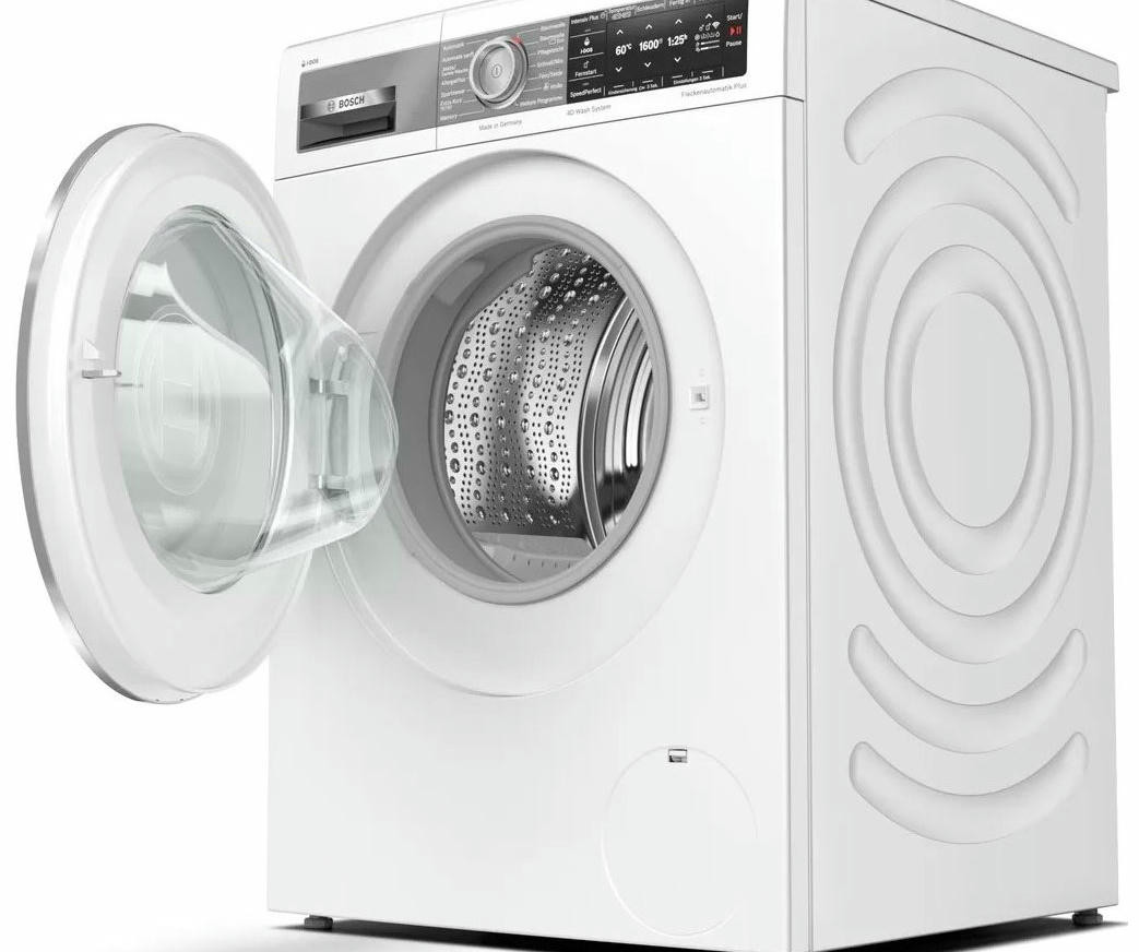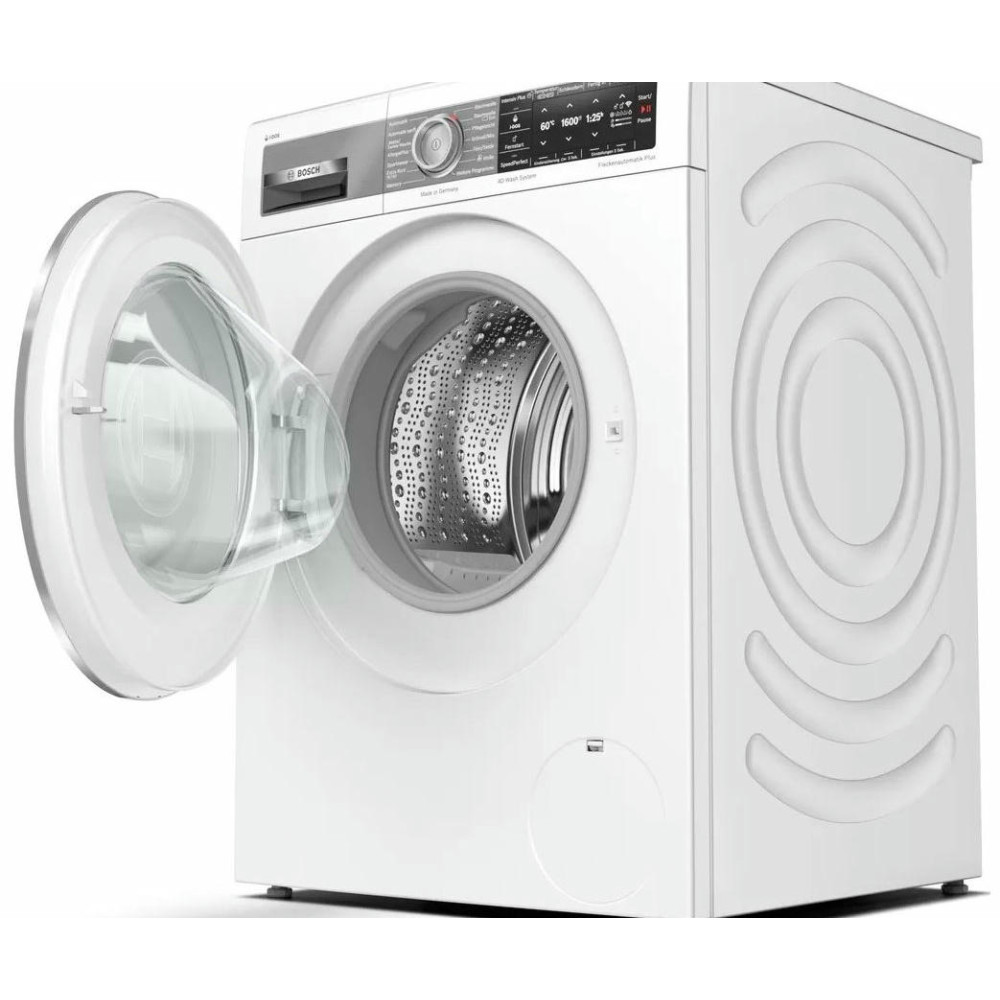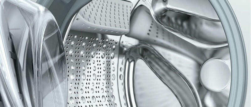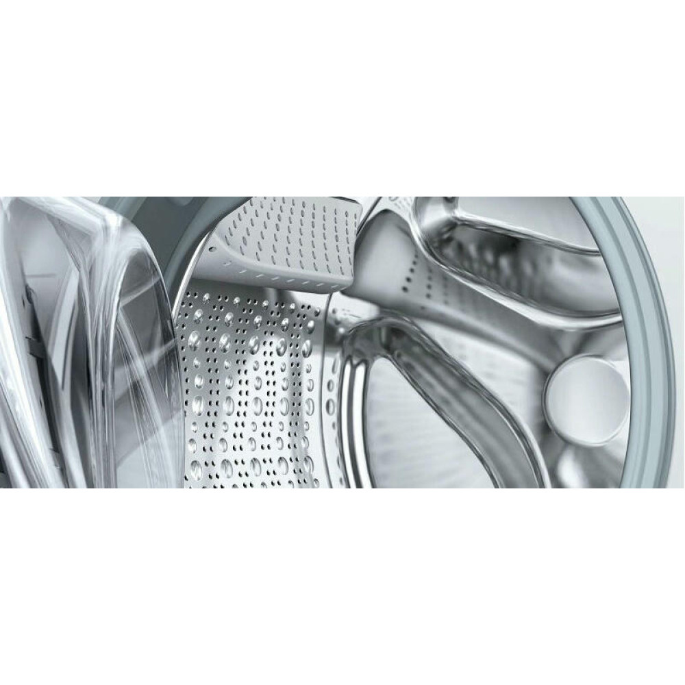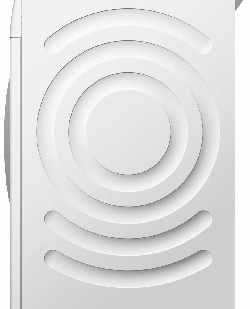 Обратите внимание на дизайн модели Бош WAX32E90ME. Несмотря на то, что в нее входит до 10 кг белья, она не выглядит громоздкой. Классический белый цвет поможет ей вписаться практически в любое пространство. А дуги и круги на боковых стенках будут гасить излишнюю вибрацию и шум, даже во время полоскания и отжима. Максимальная скорость отжима — 1600 оборотов в минуту, а уровень шума — до 71 Дб. Такие характеристики достигаются и благодаря современному бесщеточному мотору EcoSilenceDrive. Благодаря постоянным магнитам в его устройстве он чрезвычайно быстро достигает максимальной мощности. Такая конструкция более долговечна, чем щеточный мотор, а значит, машина прослужит вам долго.