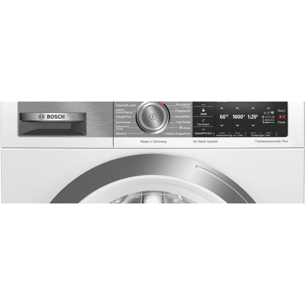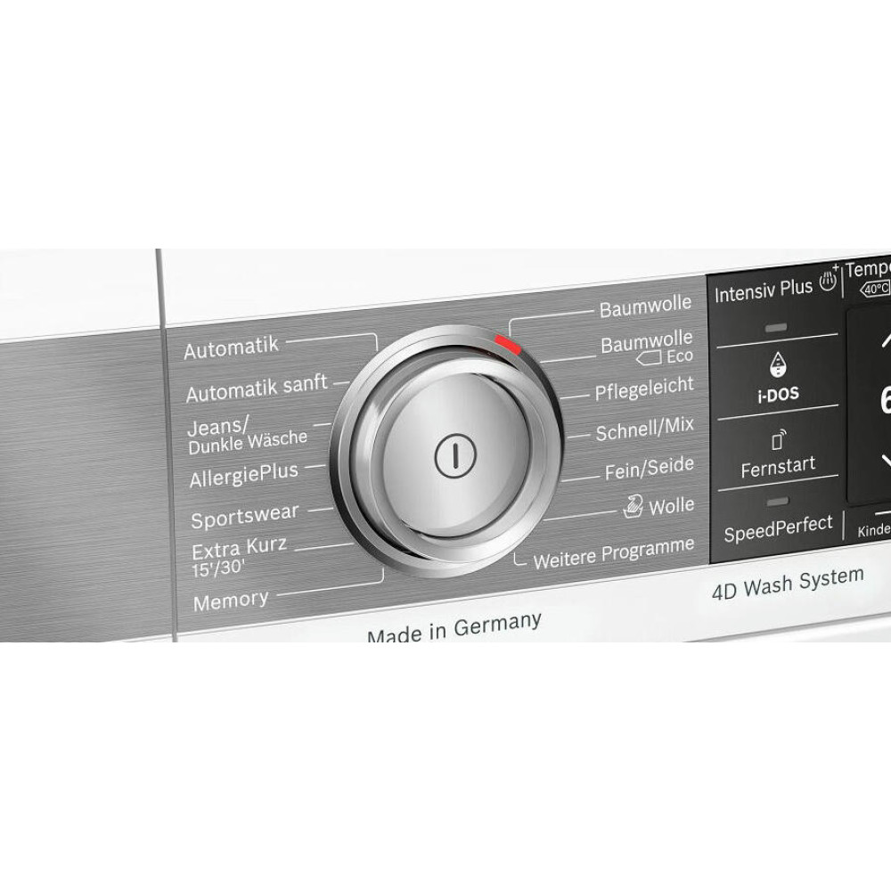 Модель управляется с помощью кнопок и поворотного переключателя, все показатели видно на многофункциональном TFT дисплее. Но можно пользоваться и приложением Home Connect, чтобы выставлять функции и режимы со смартфона. Безопасность прибора на должной высоте. Уровень воды контролирует система АquaStop. Она мгновенно отреагирует при его повышении, и подача воды прекратится. Есть и защита от детей и случайных прикосновений. Ваши настройки не собьются. Машина экономно расходует электроэнергию, у нее самый высокий на сегодняшний день класс энергоэффективности А+++.
