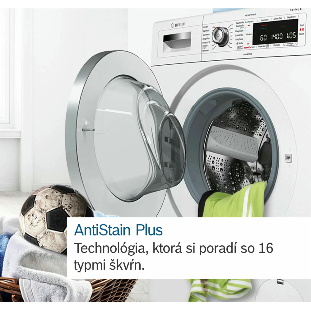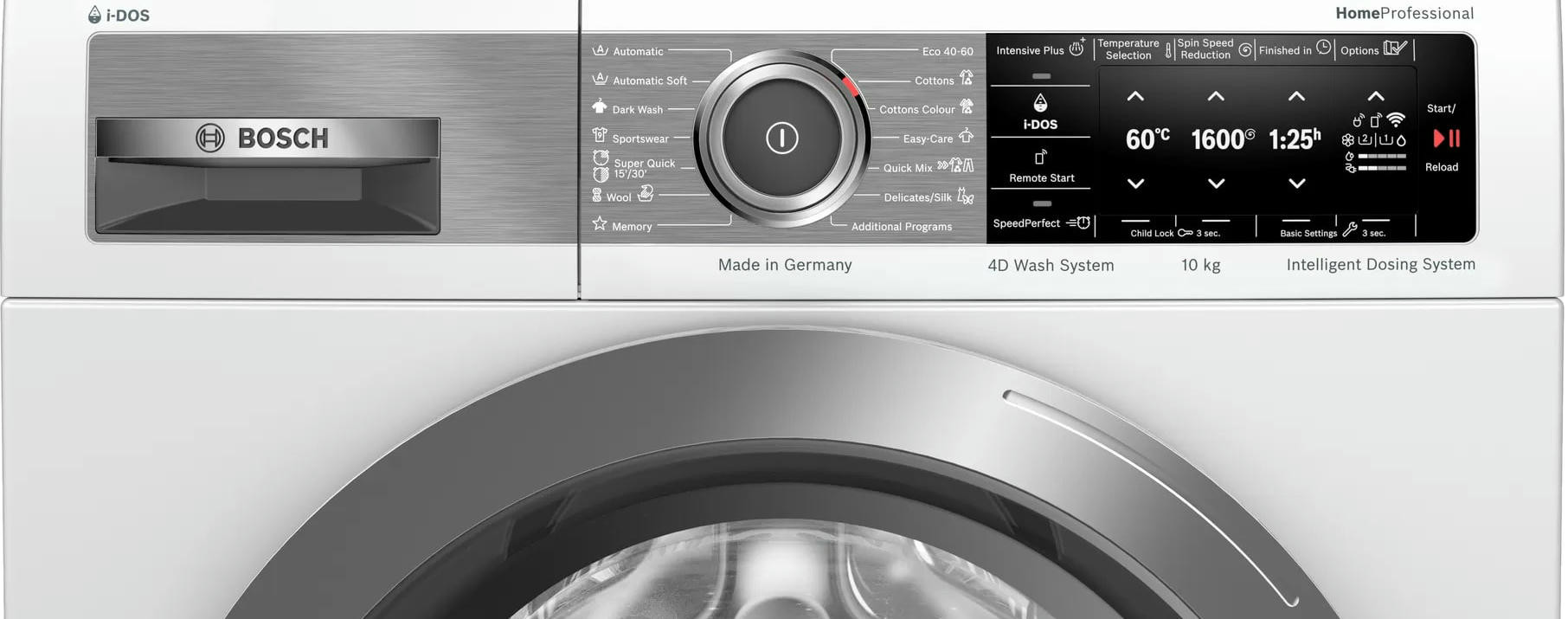 Стиральная машина Bosch Home Professional WAX32EH0BY — модель с объемом барабана 70 л и максимальной загрузкой 10 кг. 14 программ и четыре функции помогут идеально и аккуратно отстирать любые типы тканей и виды одежды без потери их качества. Технология удаления пятен «AntiStain» — в автоматическом режиме удалит 16 типов загрязнения. Интуитивно понятное электронное управление с TFT-дисплеем для отображения параметров стирки облегчит эксплуатацию прибора. Технология Home Connect отправит уведомление об окончании стирки. Достаточно через приложение указать, к какому времени белье должно быть готово.