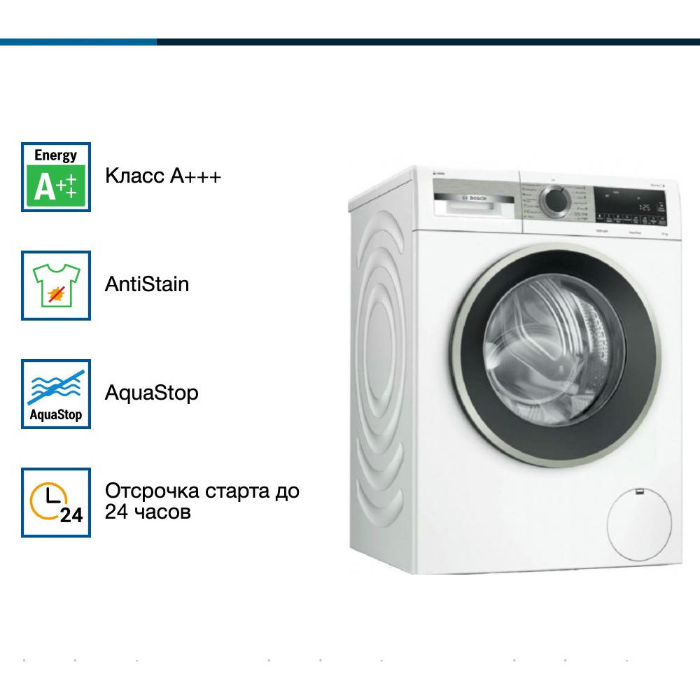 Стиральная машина Bosch WGA2540XME - это современное решение для бытовых нужд, которое сочетает в себе надежность, эффективность и стиль. Модель отличается высоким качеством и долговечностью, что подтверждается 12-месячной гарантией от производителя. Устройство имеет привлекательный современный дизайн с белым корпусом и удобным многофункциональным LED-дисплеем. Эргономичные кнопки управления и интуитивно понятные индикаторы делают процесс стирки максимально простым и комфортным. Модель относится к серии Serie 4 и представляет собой отдельностоящую машину с фронтальной загрузкой. Максимальная загрузка при стирке составляет 10 кг, что идеально подойдет для больших семей или тех, кто предпочитает стирать большие объемы белья за один раз. Максимальная скорость отжима достигает 1400 об./мин., обеспечивая отличные результаты и быструю подготовку белья к сушке.