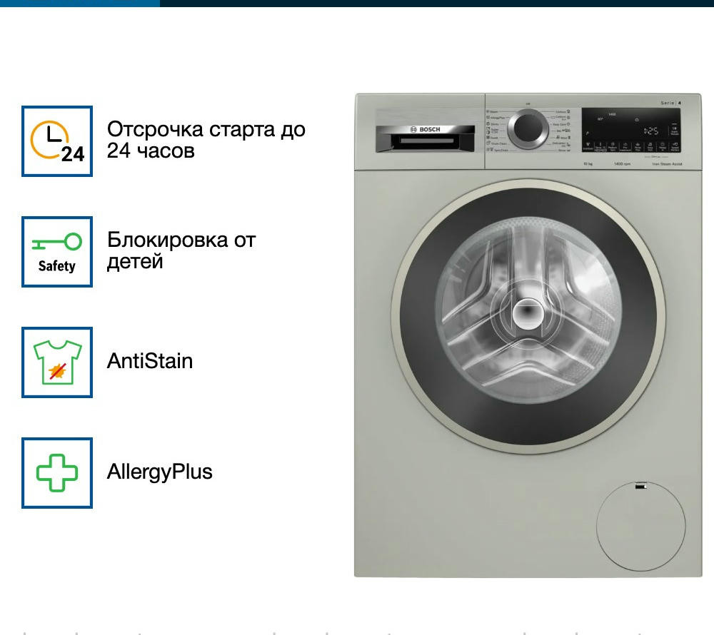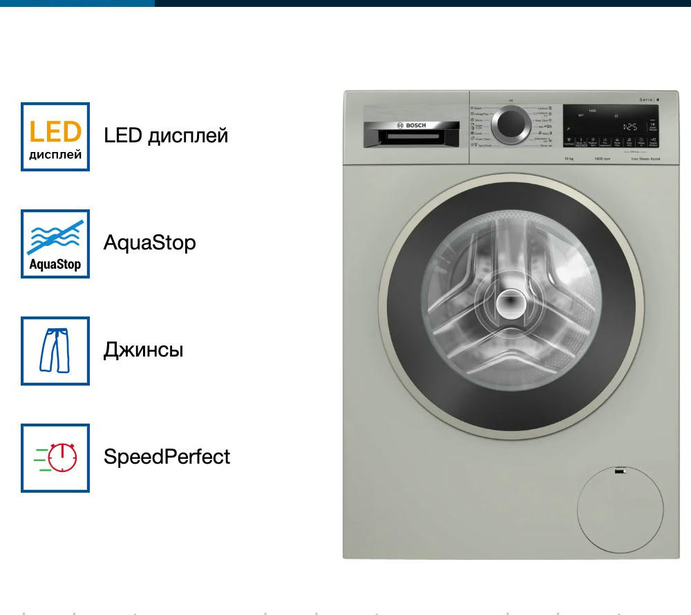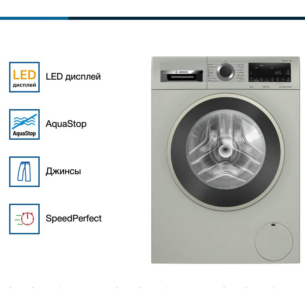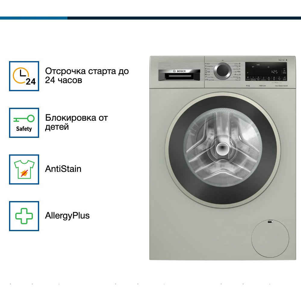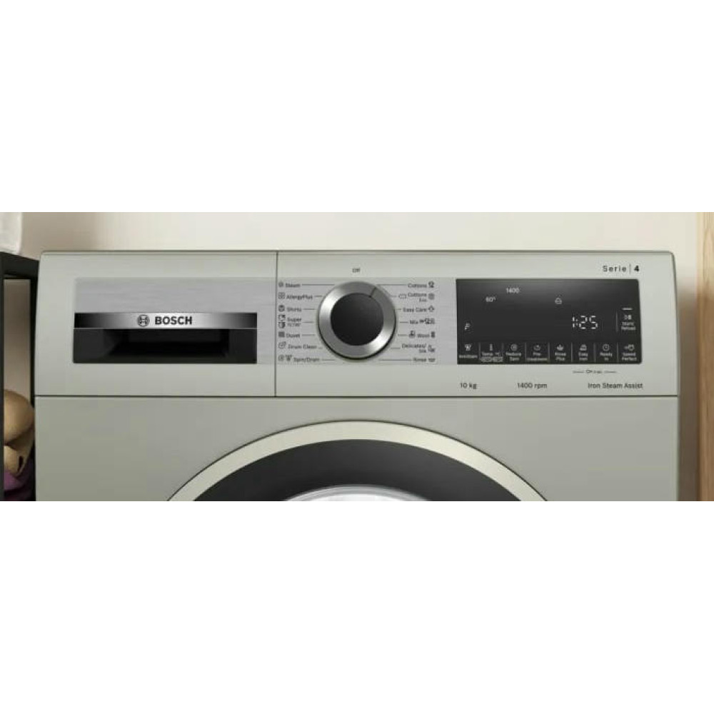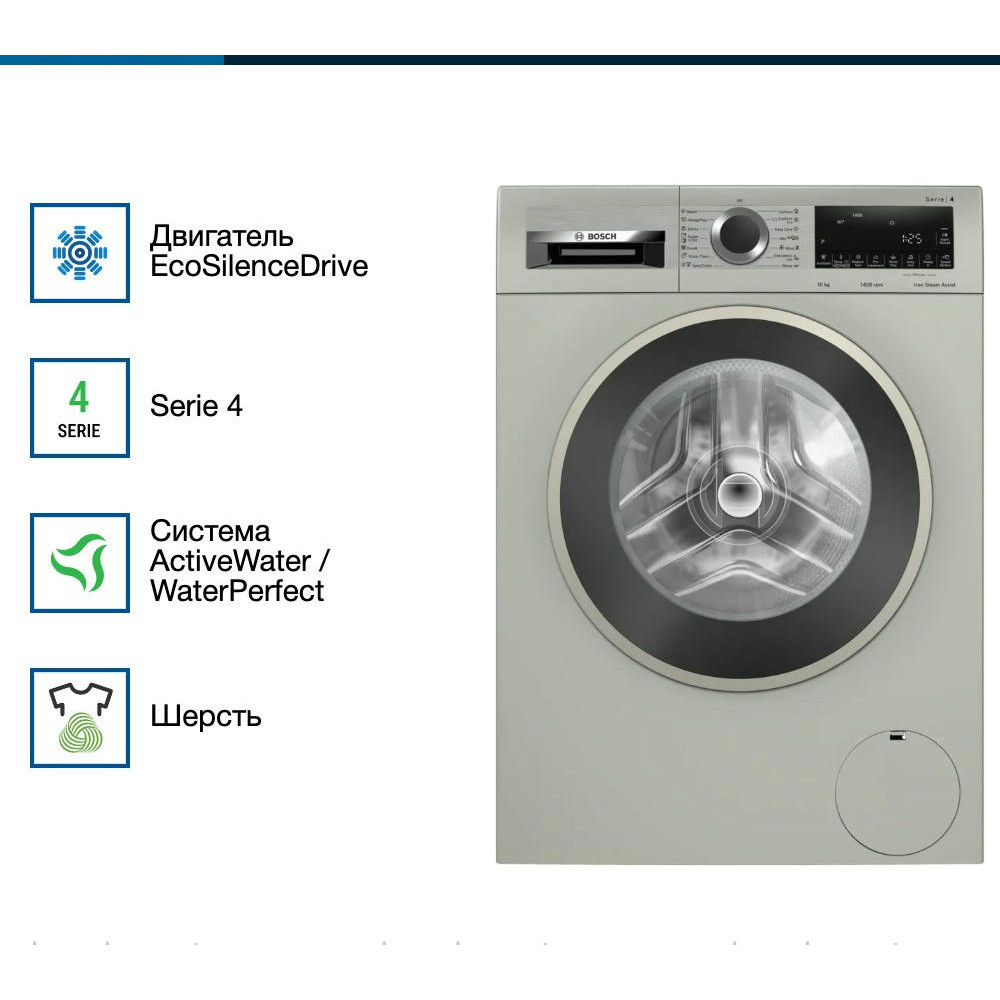 Устройство имеет привлекательный современный дизайн с белым корпусом и удобным многофункциональным LED-дисплеем. Эргономичные кнопки управления и интуитивно понятные индикаторы делают процесс стирки максимально простым и комфортным. Модель относится к серии Serie 4 и представляет собой отдельностоящую машину с фронтальной загрузкой.