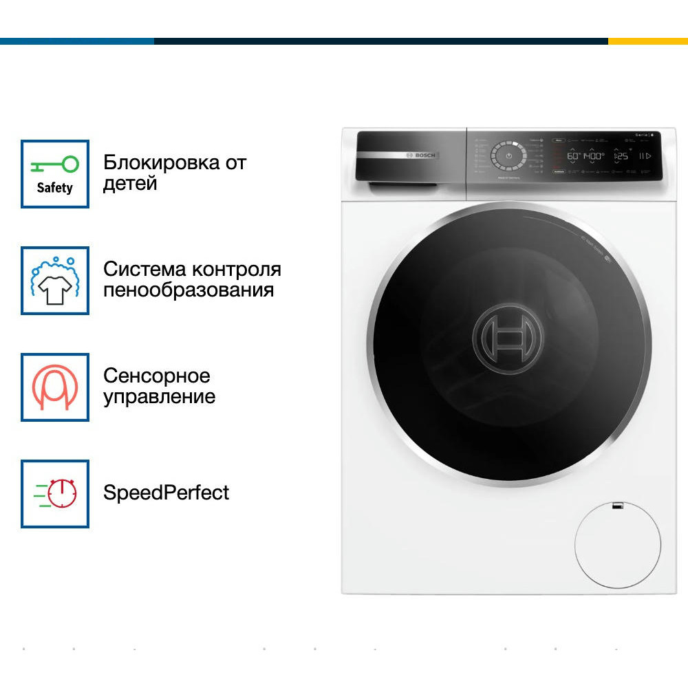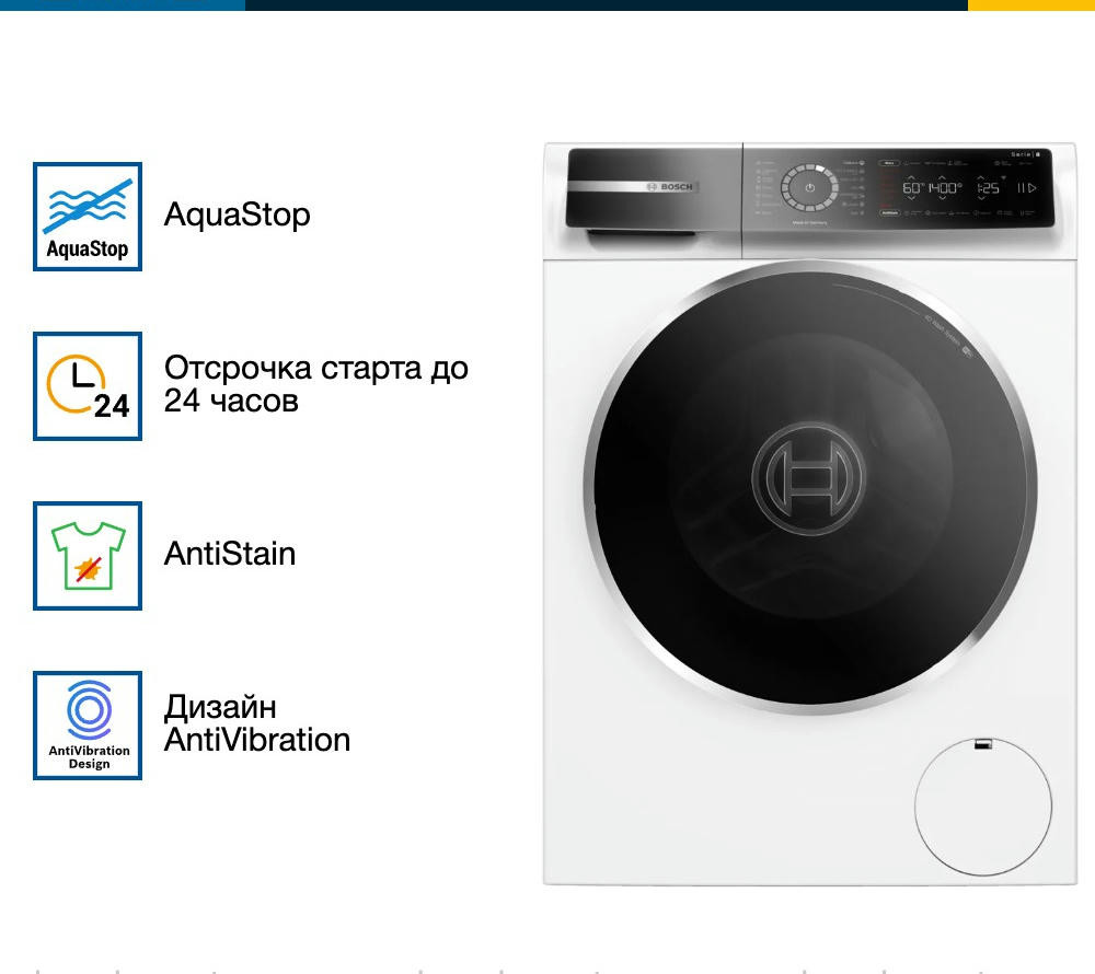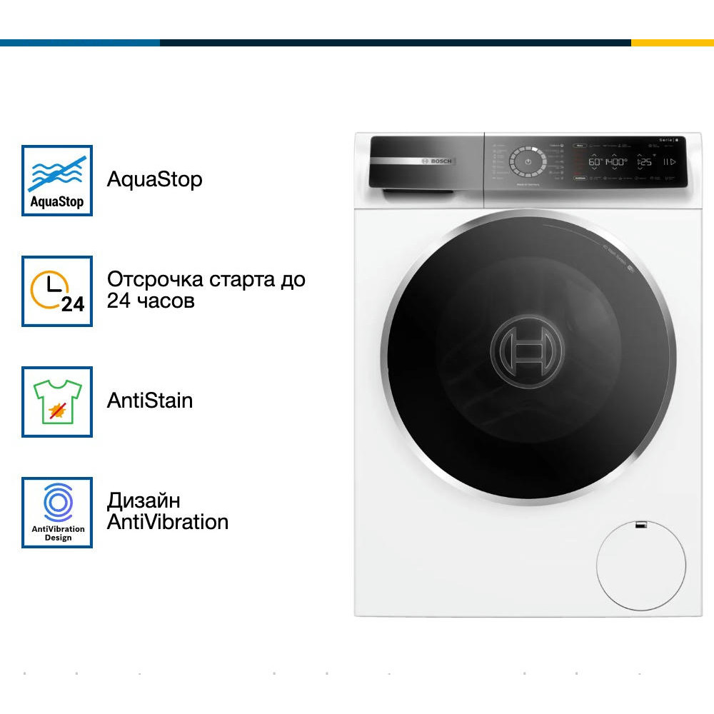 Стабильная и надежная стиральная машина Bosch WGB24400ME превратит рутину стирки в простой и удобный процесс. Произведенная в Германии, эта модель отличается высоким качеством исполнения и продуманным дизайном. Благодаря своим компактным размерам и классическому белому цвету, она легко впишется в любой интерьер, подчеркивая его стиль и элегантность. Одним из ключевых преимуществ Bosch WGB24400ME является ее вместительность. Максимальная загрузка при стирке составляет 9 кг, что делает эту модель идеальным выбором для больших семей.
