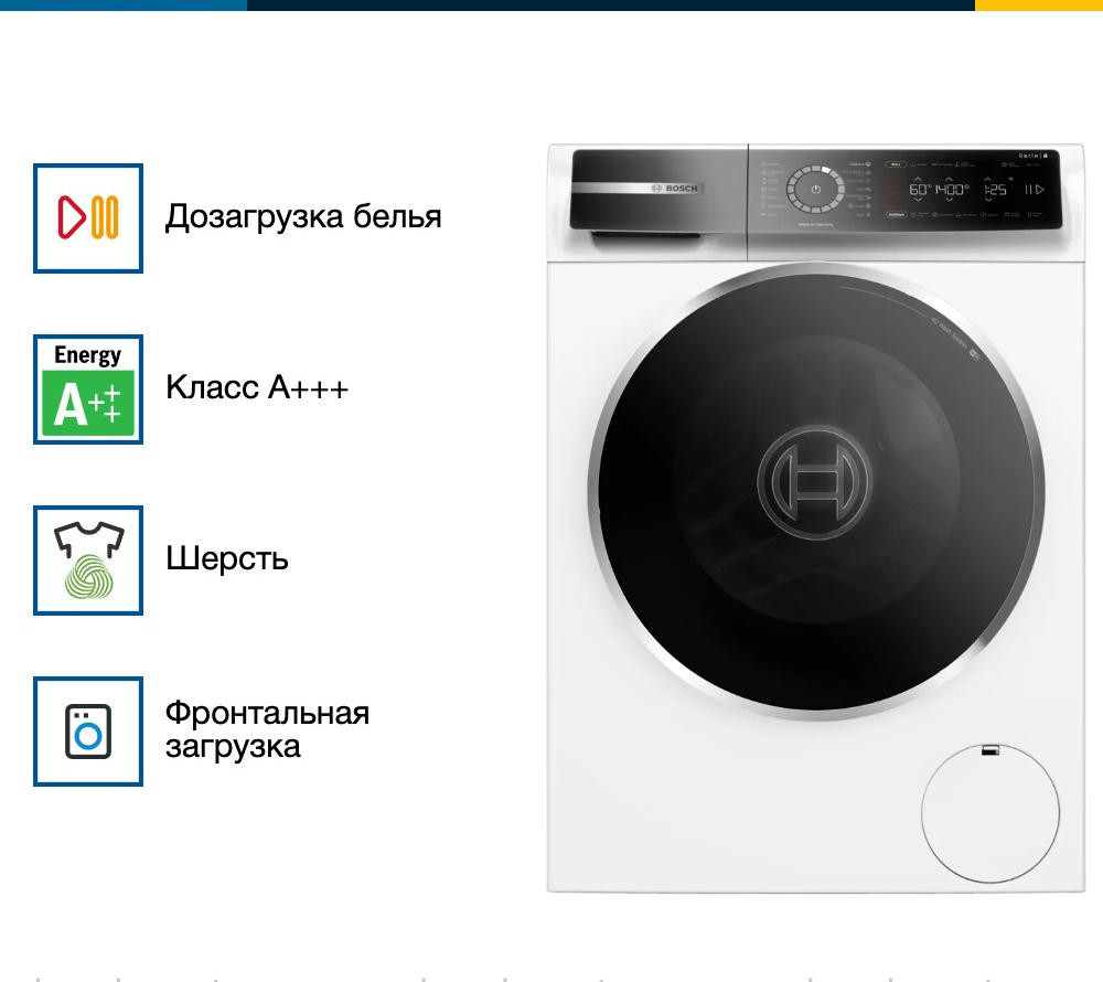 - Удобное управление и большой выбор программ стирки