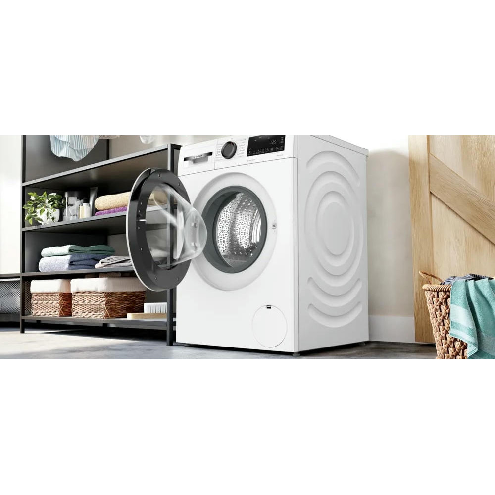Данная модель выполнена в классическом белом цвете, который подойдет к любому интерьеру. Управление машиной осуществляется с помощью электронного поворотного переключателя и сенсорных элементов. Удобный многофункциональный LED дисплей позволяет следить за ходом программы и оставшимся временем до окончания стирки. После завершения программы звучит акустический сигнал, благодаря чему вы всегда будете в курсе процесса. Модель Bosch WGG242Z2BY оснащена функцией отложенного старта, позволяющей задать время начала стирки на 24 часа вперед. Система ActiveWater автоматически определяет объем загруженного белья и регулирует потребление воды, экономя ресурсы. Всего в машине предусмотрено 14 программ стирки, включая предварительную стирку, стирку хлопка, смешанного и деликатного белья, джинсов, спортивной одежды и даже стирку в холодной воде.
