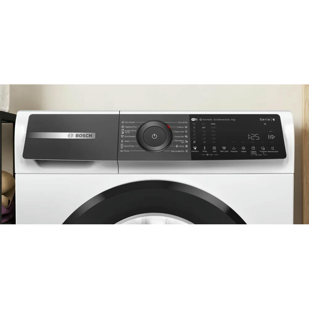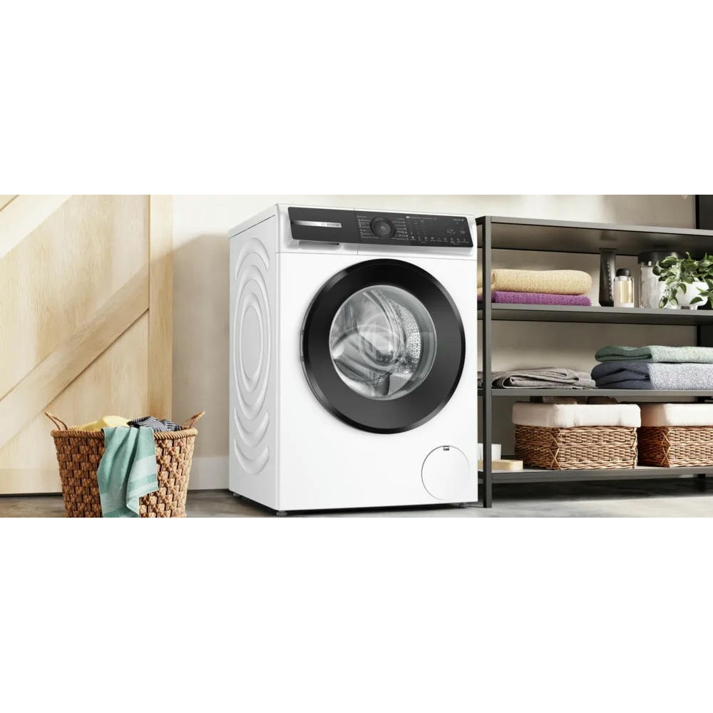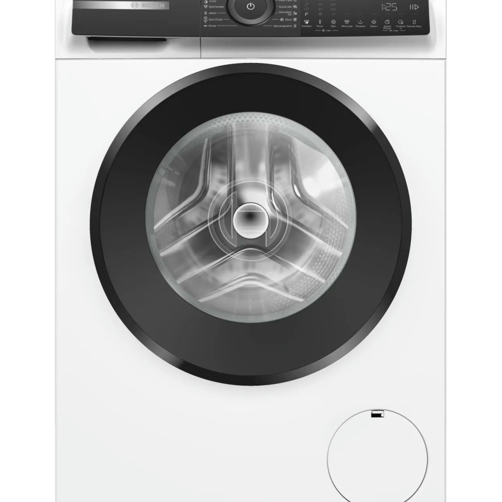 Стиральная машина Bosch WGH24400BY имеет элегантный внешний вид в белом цвете подчёркивает предметный, лаконичный характер техники, рассчитанной на домашнюю и профессиональную активность. Корпус продуман до мелочей: высокий профиль 84.5 см и стандартные габариты по ширине 59.8 и глубине 59 см гармонично вписываются в нишу с отдельностоящей установкой, а продуманная комплектация позволяет разместить прибор без дополнительной доработки помещения. Массивная конструкция с весом 72.5 кг формирует ощущение монолитности, гарантируя стабильность при циклах с интенсивным отжимом, который достигает 1400 об./мин. Простота эксплуатации дополнена многофункциональным LED-дисплеем и сочетанием поворотного переключателя с сенсорной панелью — интуитивная навигация облегчает выбор параметров и контроль хода. Индикация времени до окончания и акустический сигнал оповещают о завершении, а функция отложенного старта до 24 часов даёт гибкость планирования каждой загрузки.