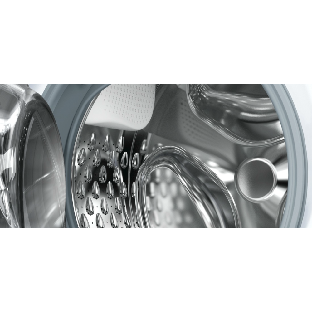 Подавление дисбаланса при отжиме снижает шум и вибрации, что создает дополнительный комфорт использования. Многоступенчатая система защиты от протечек повышает уровень безопасности.